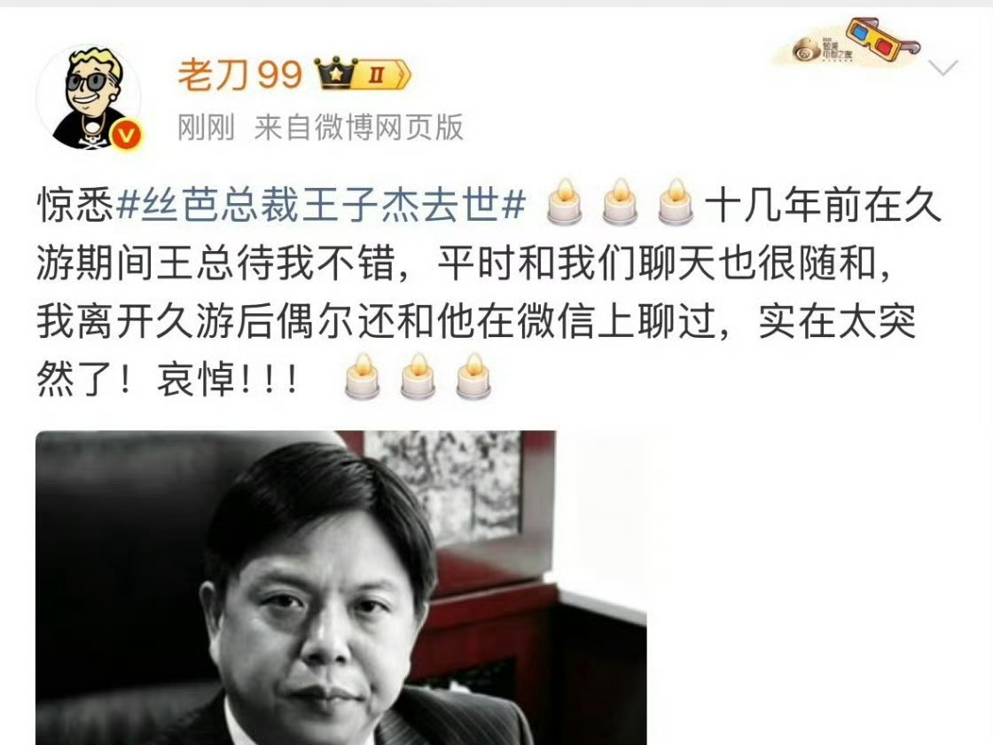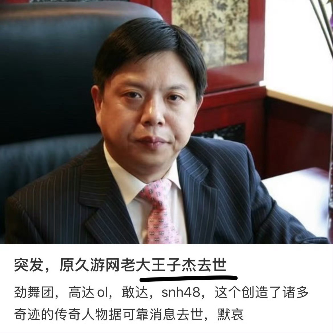 丝芭总裁王子杰去世丝芭总裁去世了,明天发讣告