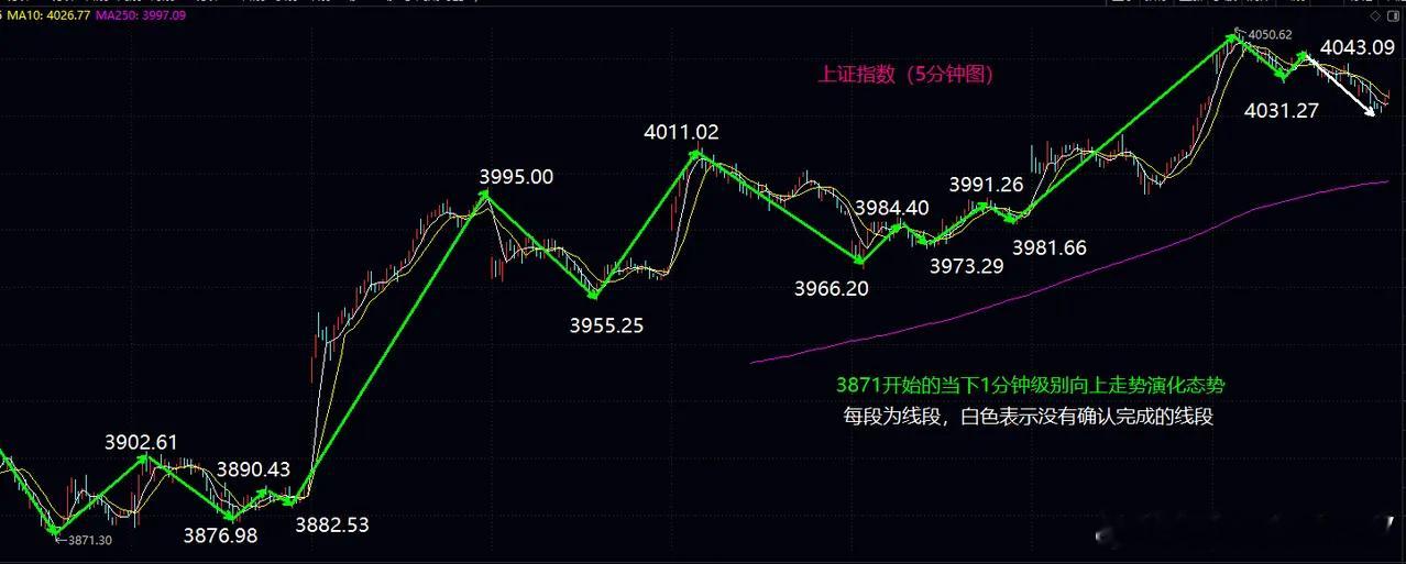操作上,明天一旦确认扩展(跌破4011就确认),其后线段反弹不能新高可以适当降低仓位,然后本周收盘到下周初大盘在最低3980之上形成有效支撑,又可以回补仓位。如果明天继续新高,那当然1分钟上涨背驰结构出现就要及时出来。