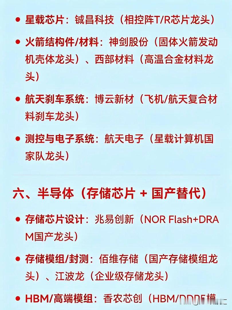卫星制造/运营:中国卫星(民用卫星国家队龙头)、中国卫通(低轨通信运营龙头)