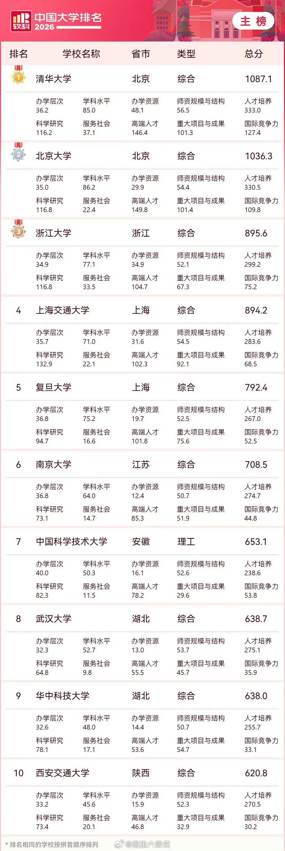 2026中国大学排名2026中国大学排名新鲜出炉!不同榜单侧重方向各不相同,有人看好老牌名校的底蕴,也有人认可后起之秀的突破。你的母校今年排名有什么变化?你心中的top院校又是哪所?快来聊聊吧~