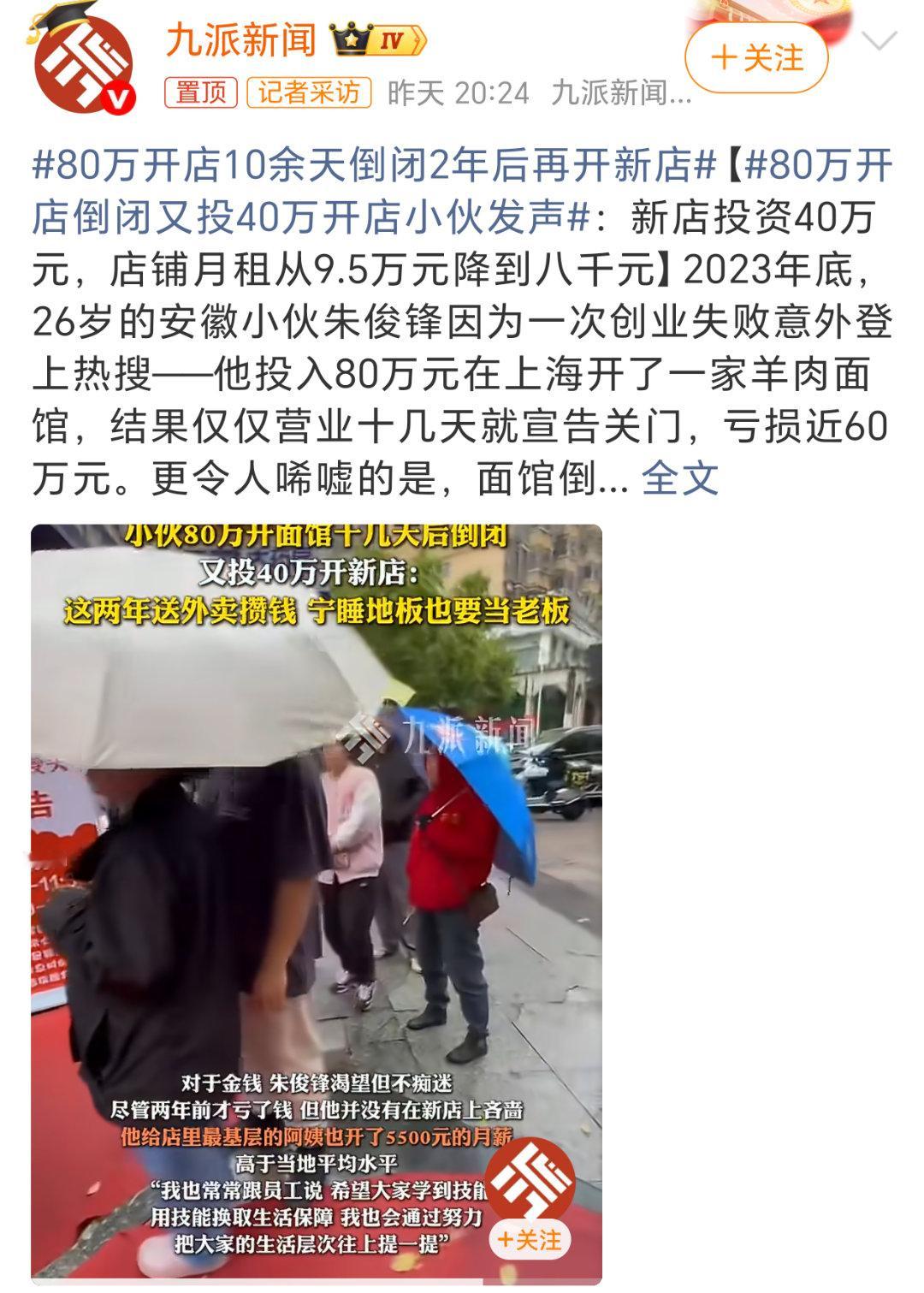 80万开店倒闭又投40万开店小伙发声哥们看来不太适合创业,还是踏实的找个工作上班吧,起码不会赔钱。