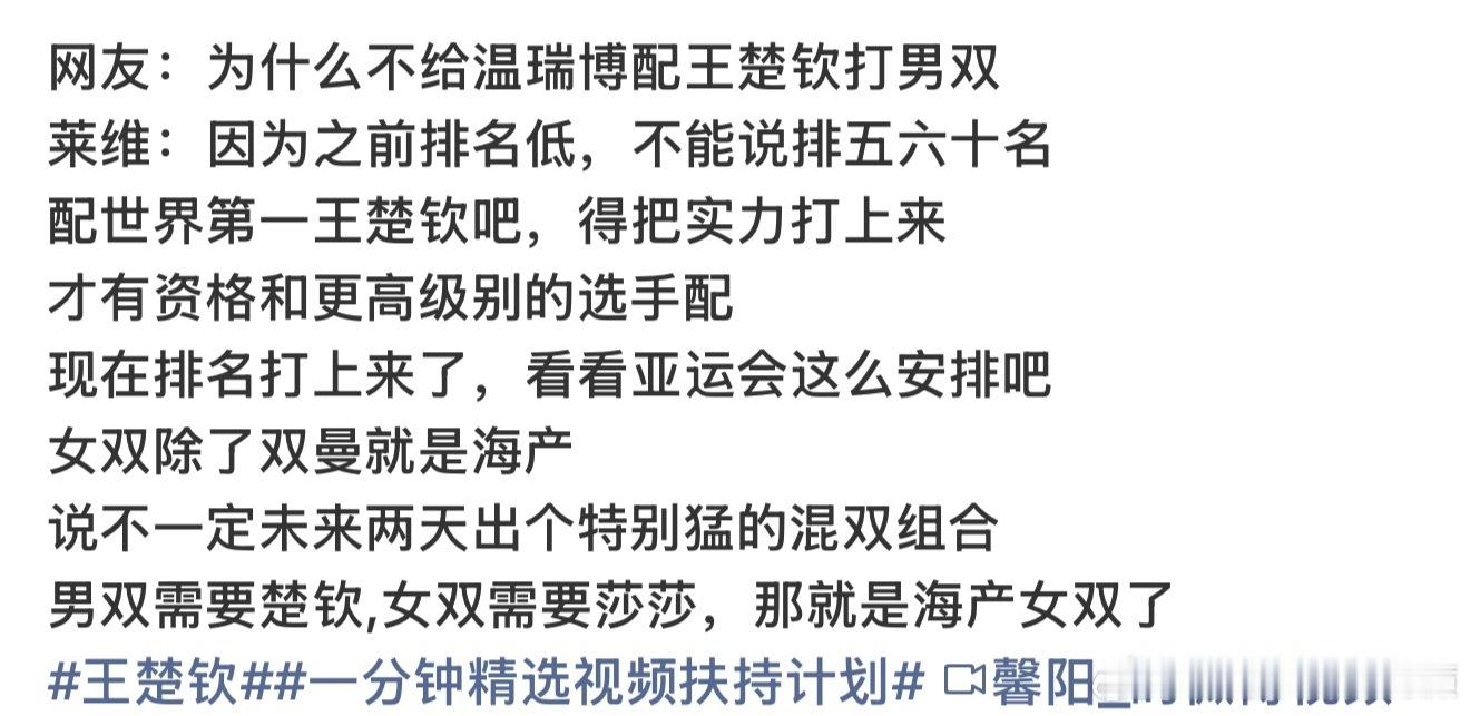 那黄友政咋一直能陪林诗栋呢 还有老鸭世排一百多的时候也和林诗栋配?