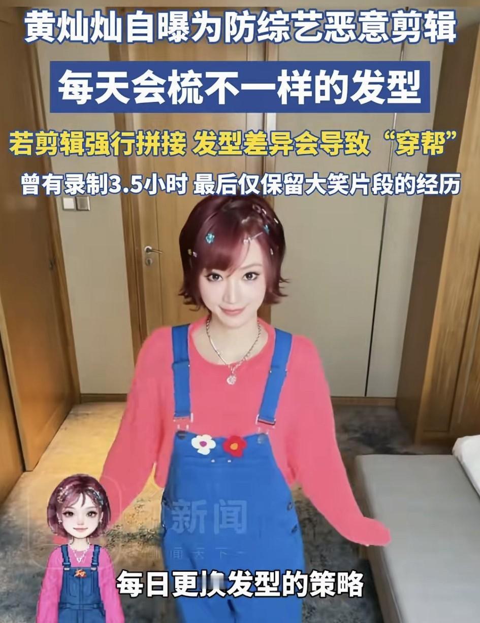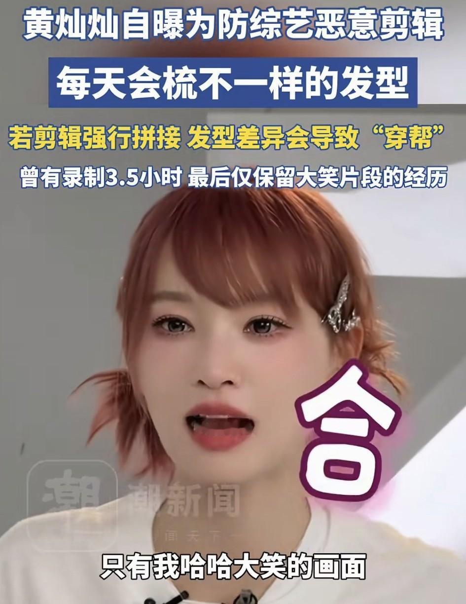 艺人黄灿灿自爆,为了防止综艺恶意剪辑,每天梳不一样的发型,因为这样若是剪辑强行拼