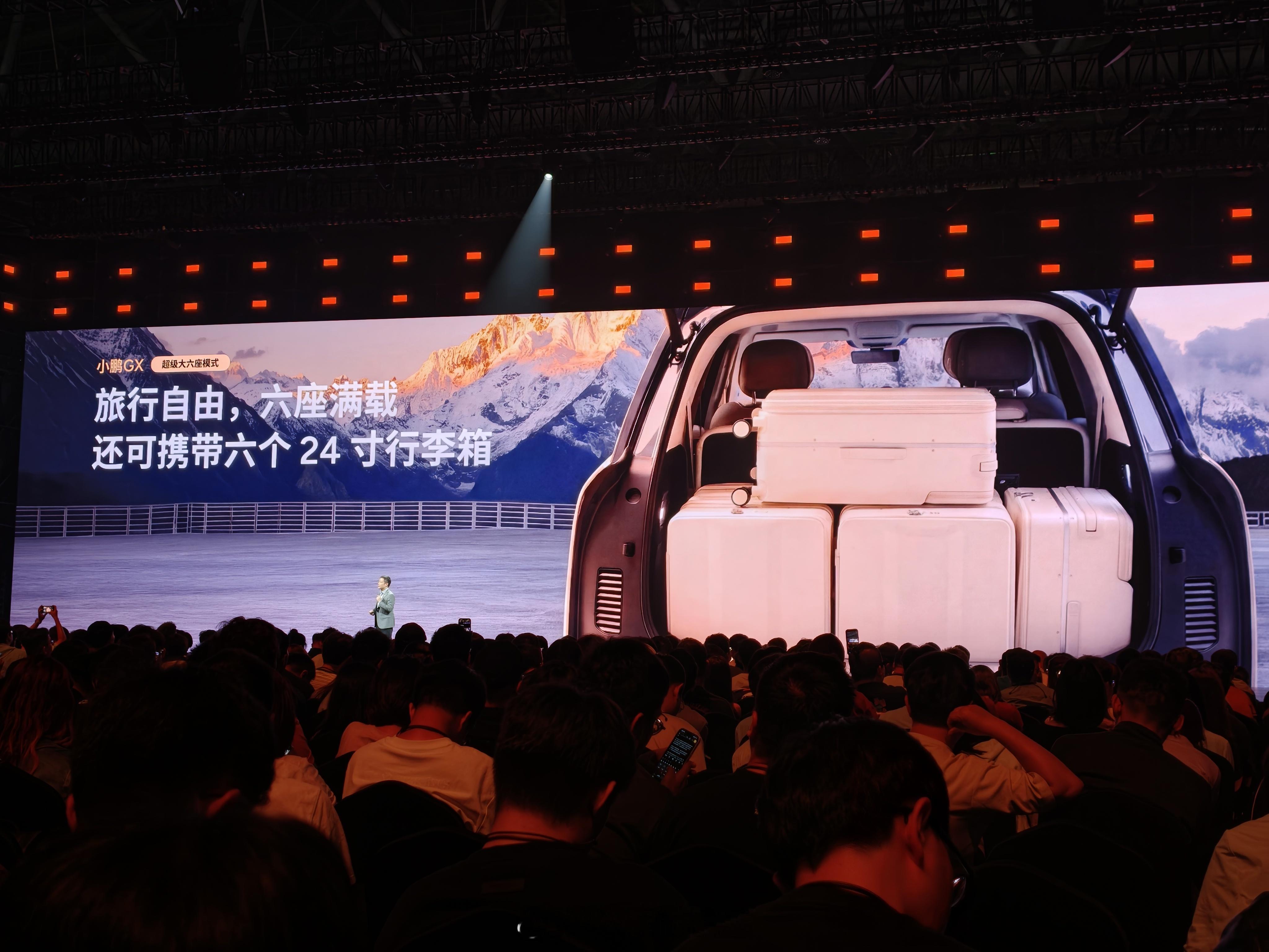 小鹏GX全新的空调,强劲制冷又轻柔送风,还有0.16s立马变色的隐私玻璃!最后排支持电动三折叠,收纳以后得到一个超级大后备箱,最主要的是,他还支持6座情况下放下6个超大24寸行李箱!每个人都有行李箱名额新科技旗舰小鹏GX今晚预售小鹏GX把四大安全测试场搬到发布会