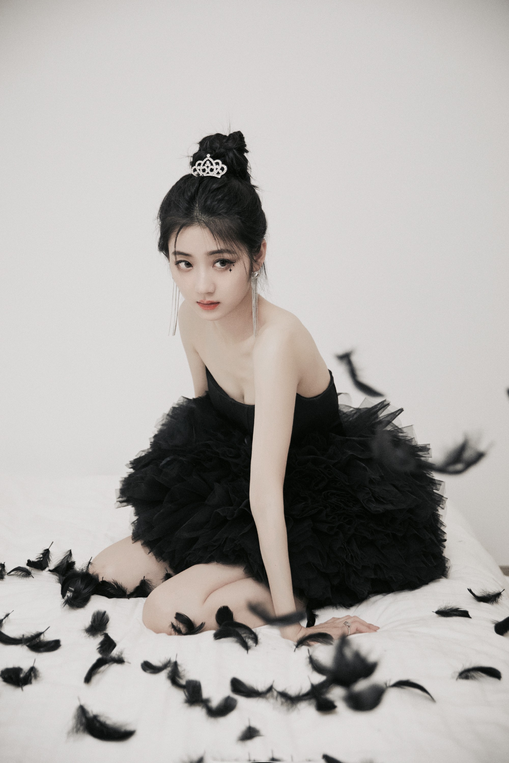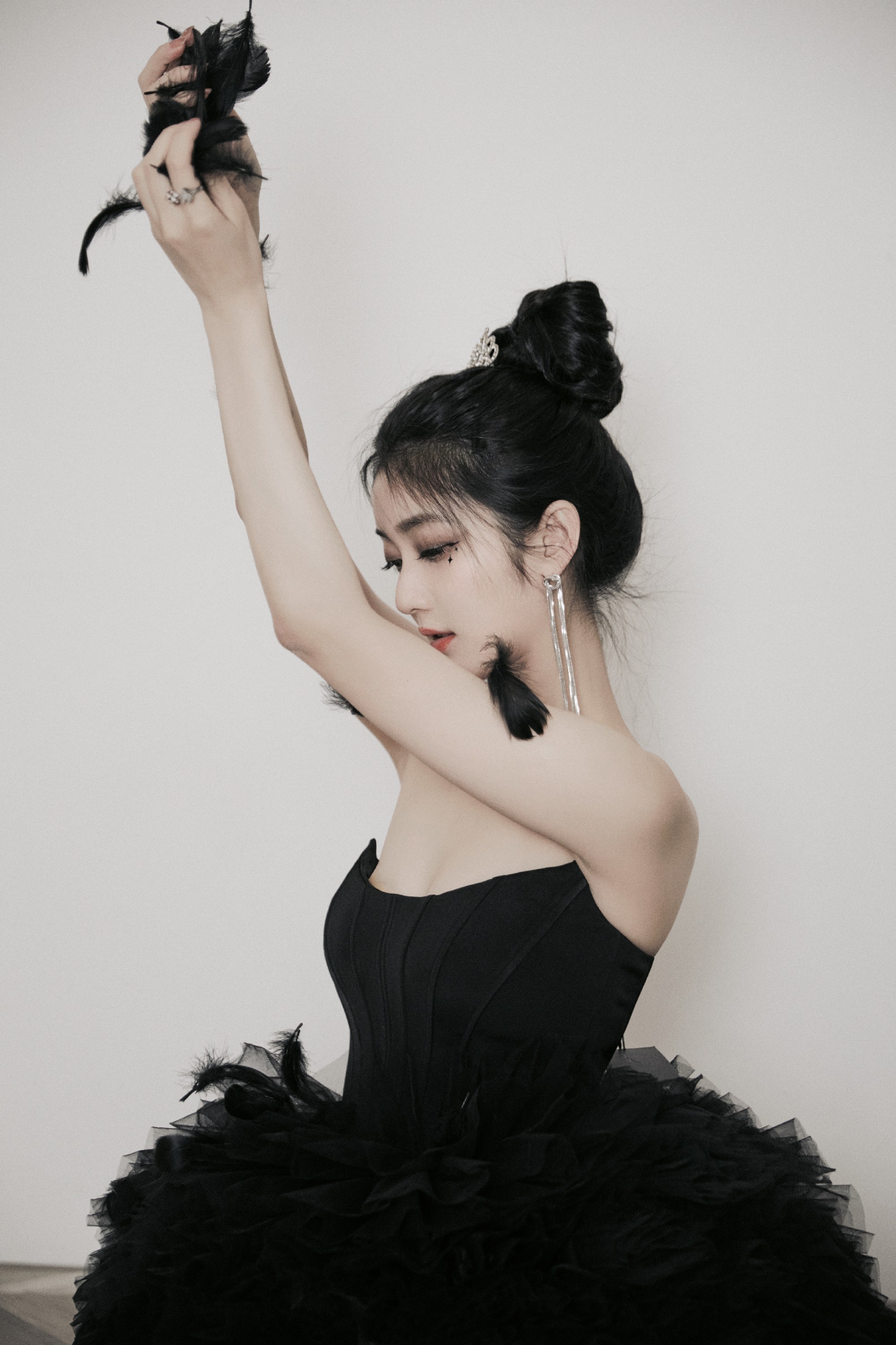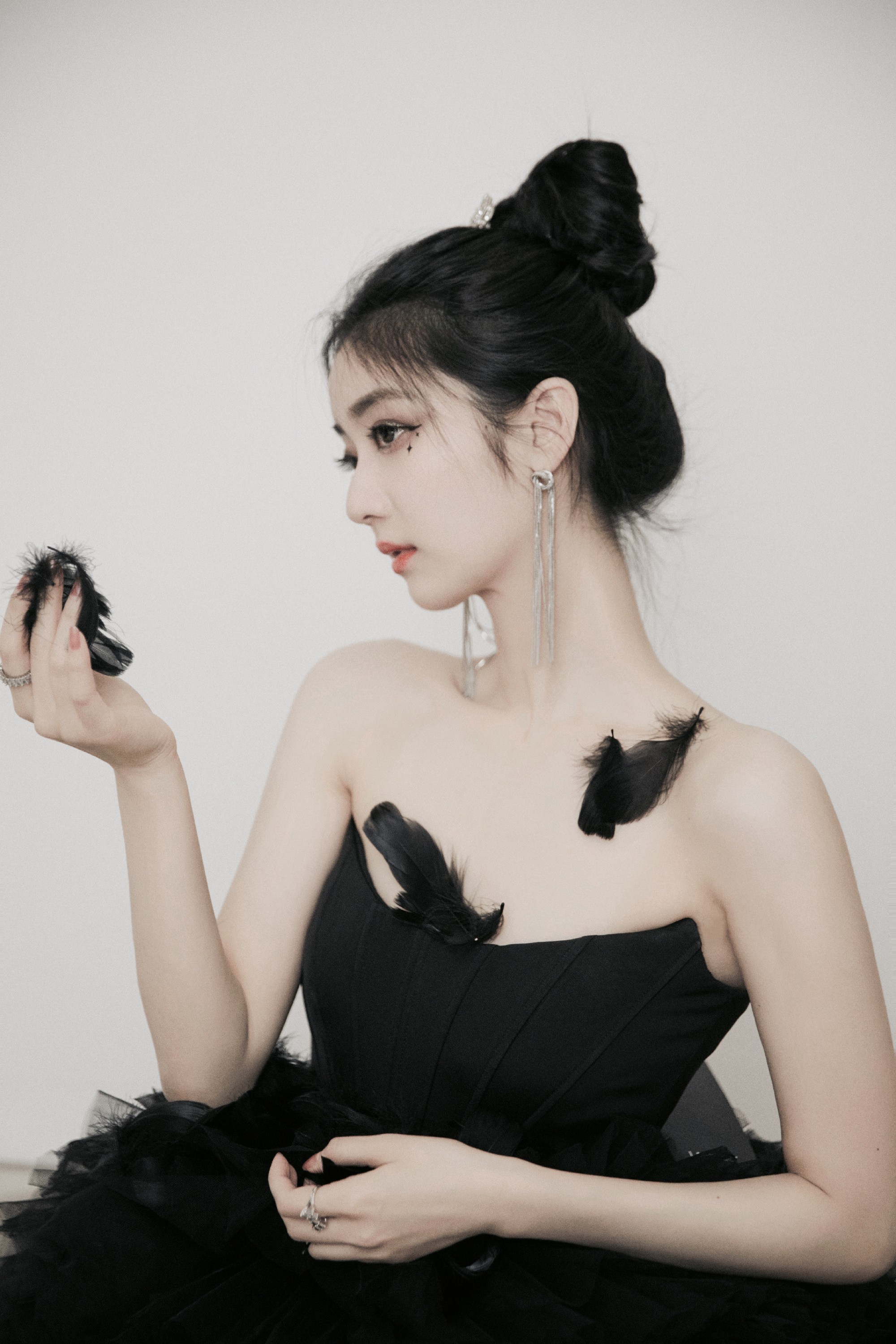 戚砚笛元气公主黑天鹅,黑色抹胸裙,少女感满满。戚砚笛