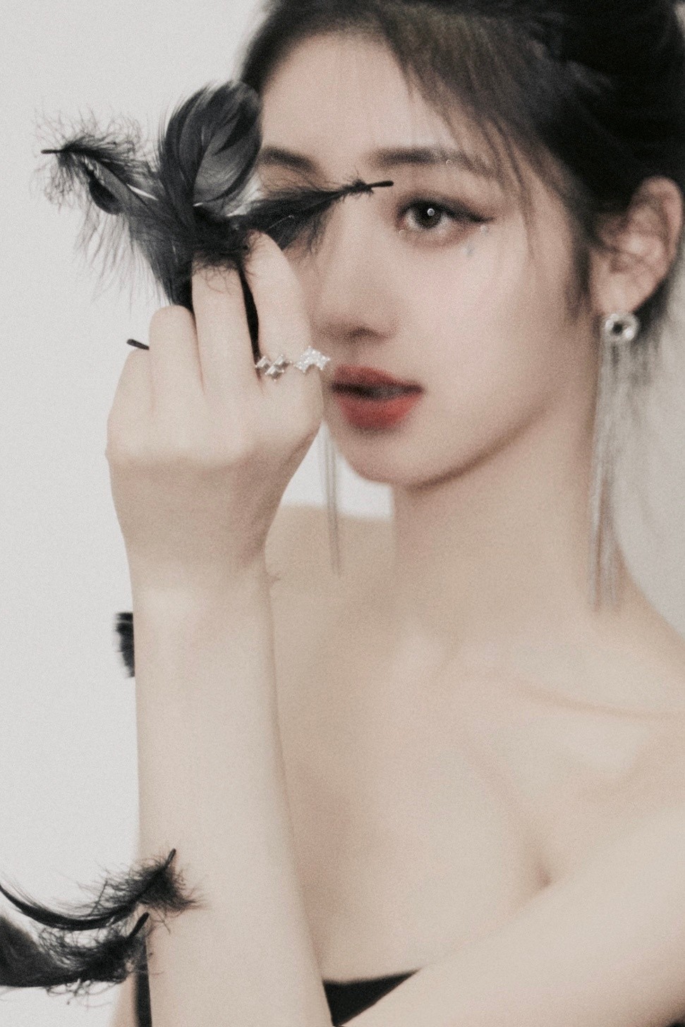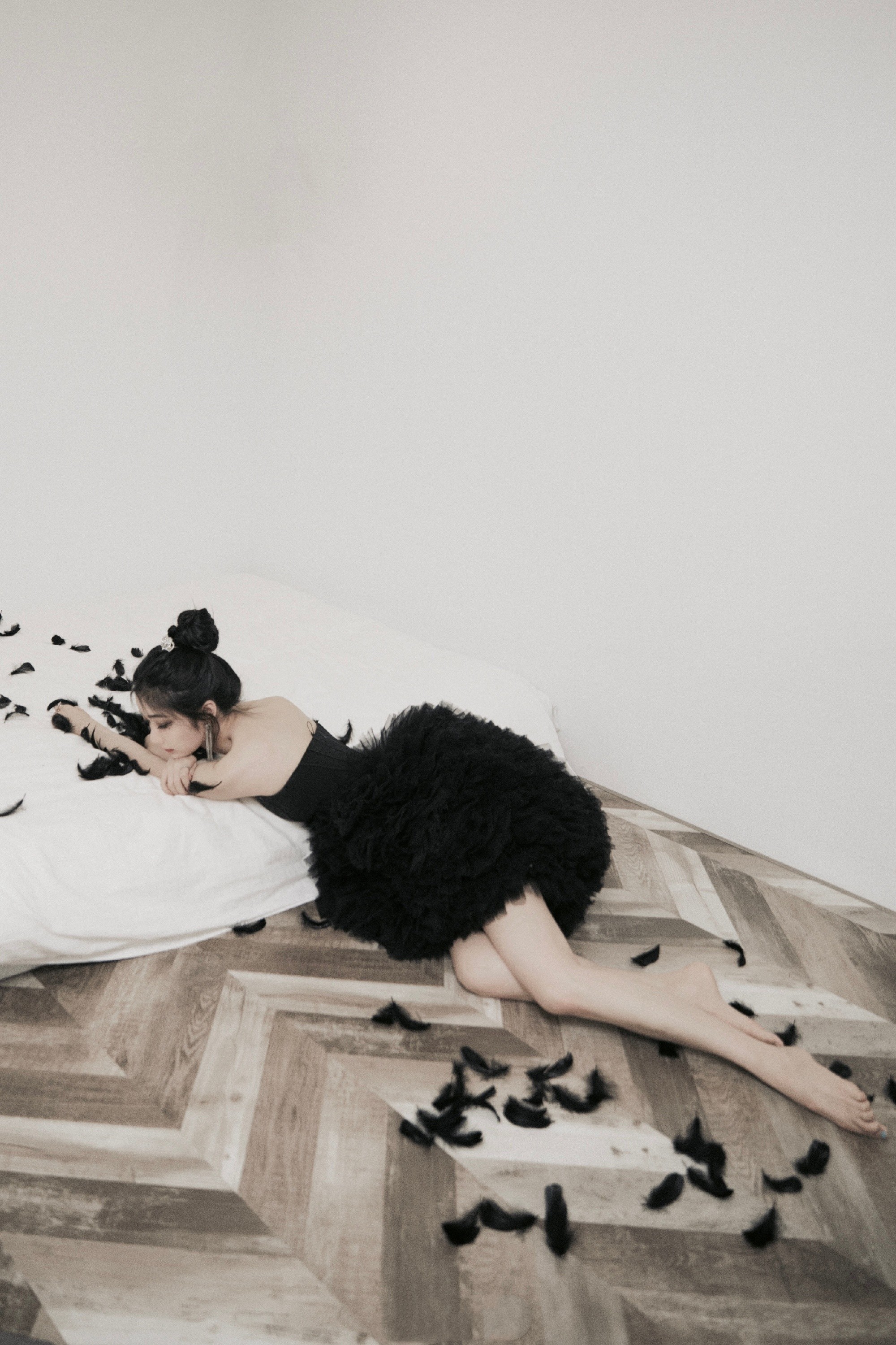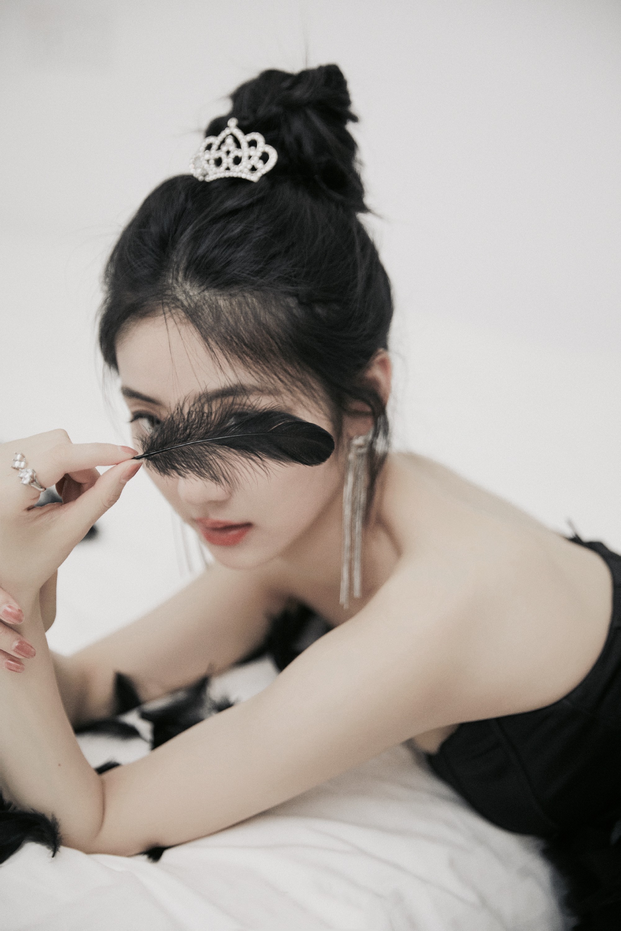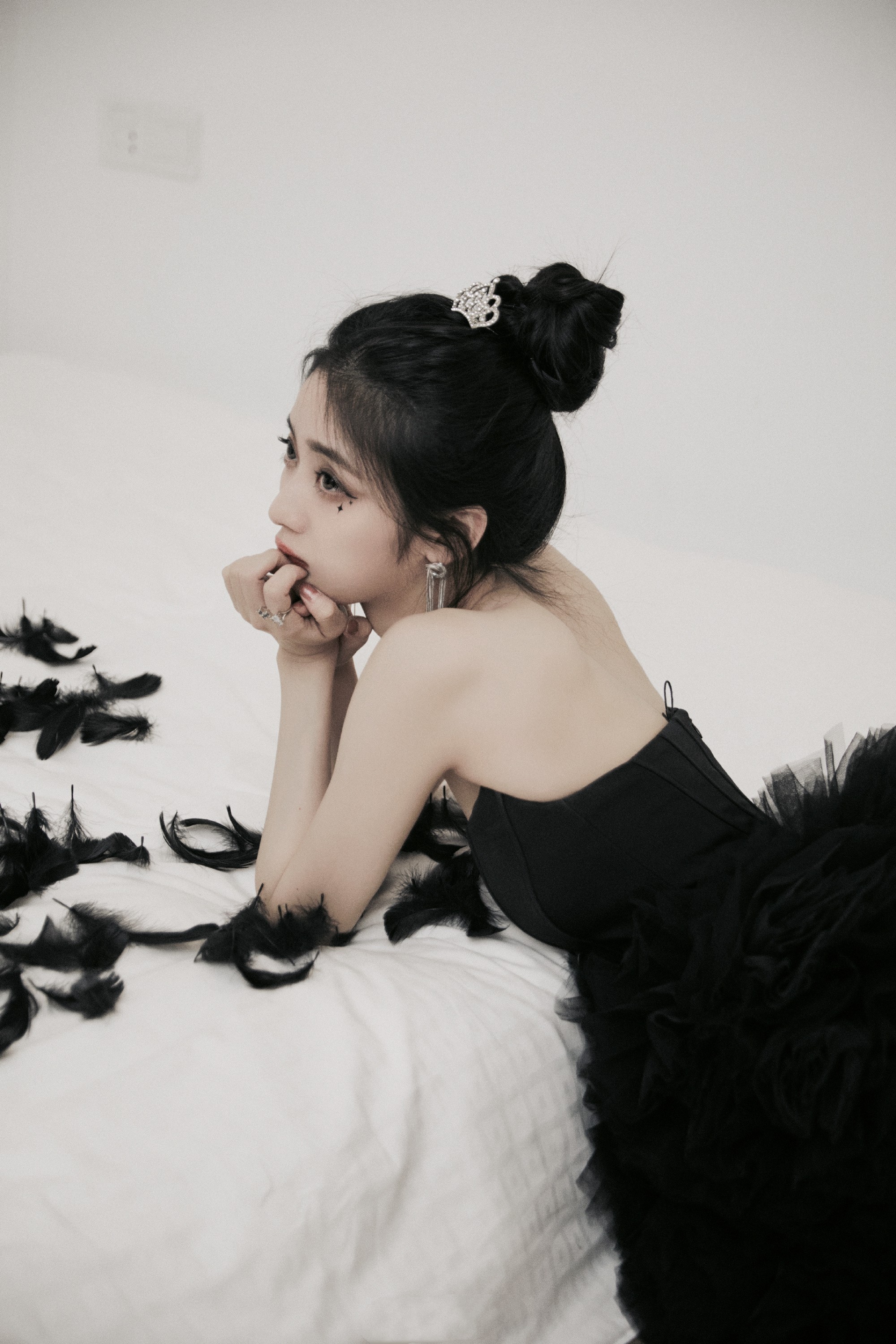 戚砚笛元气公主黑天鹅,黑色抹胸裙,少女感满满。戚砚笛