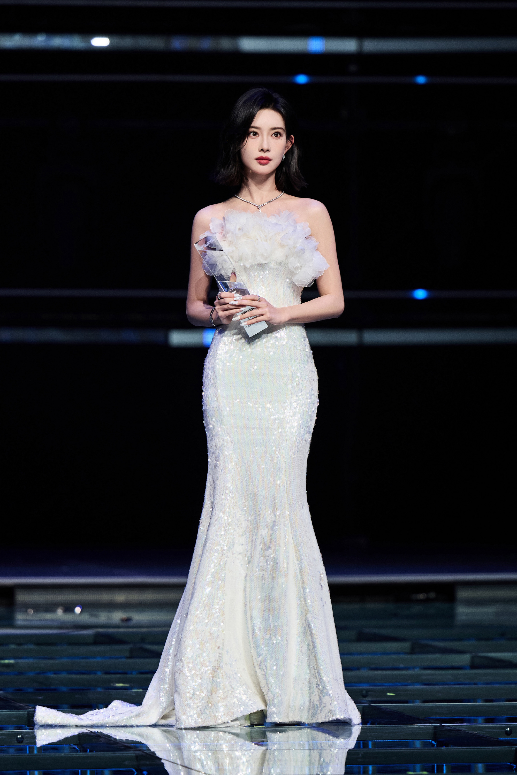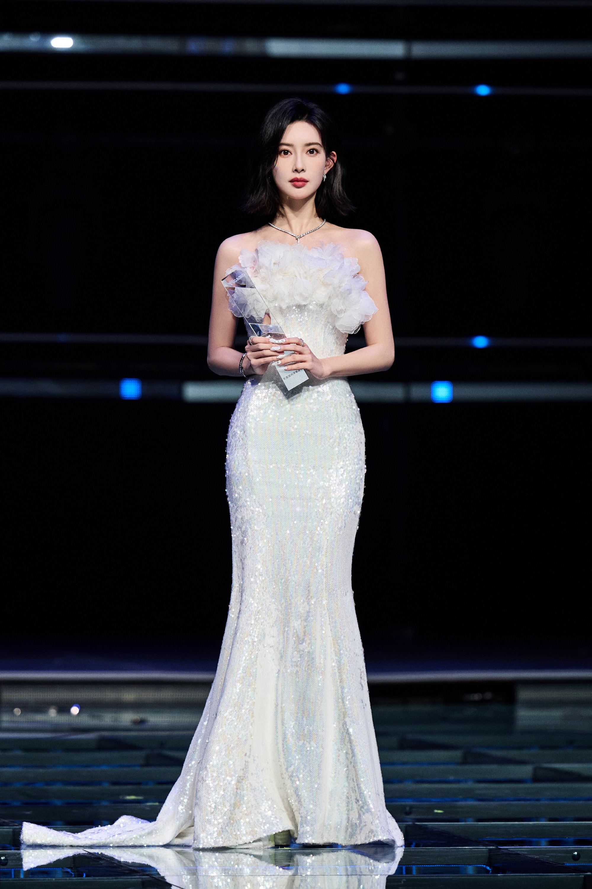 张雨绮,一身银色透纱礼服,姐姐这身材太好了吧。张雨绮