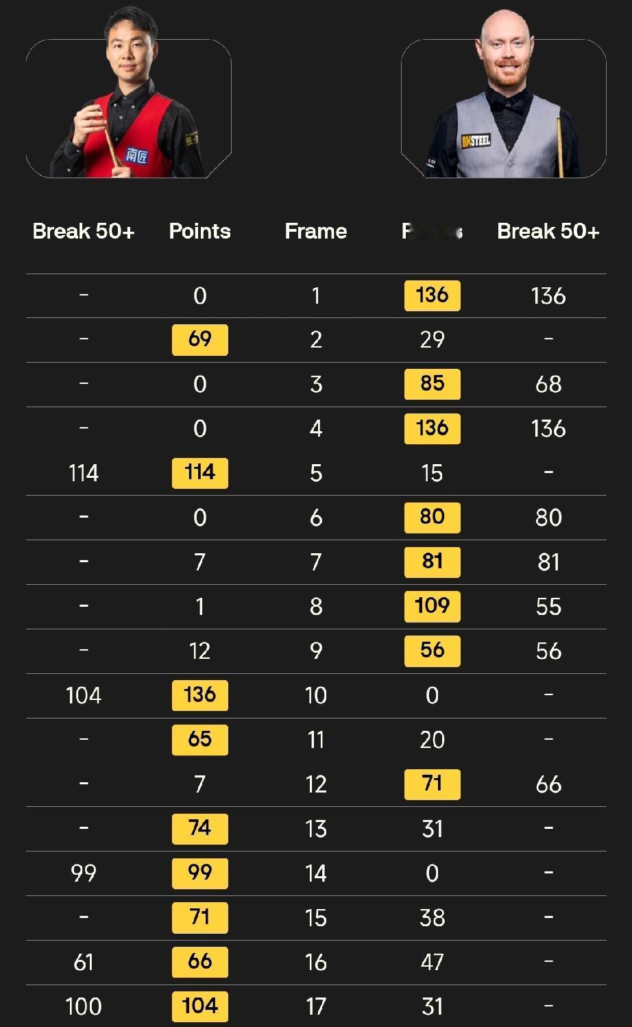 中国军团创造历史6人晋级正赛! 4月16日凌晨,2026年斯诺克世锦赛资格赛第四轮,4名中国球员战胜对手,晋级正赛。 张安达10-3扎克·舒尔蒂 贺国强10-5杰克·利索夫斯基 范争一10-4本·默滕斯 雷佩凡10-5瑞恩·戴 昨天,庞俊旭、周跃龙晋级,加上今天4人,共有6人晋级正赛,超越去年的5人,创造中国斯诺克的历史新纪录。 加上5名种子球员,今年共有11名中国球员入围世锦赛正赛! 徐思对阵加里·威尔逊,第一阶段结束2-7落后;第二阶段,徐思大爆发,打出7-1的比分,目前9-8领先加里·威尔逊。