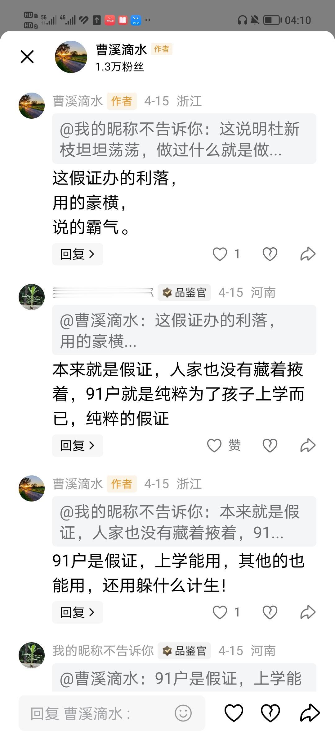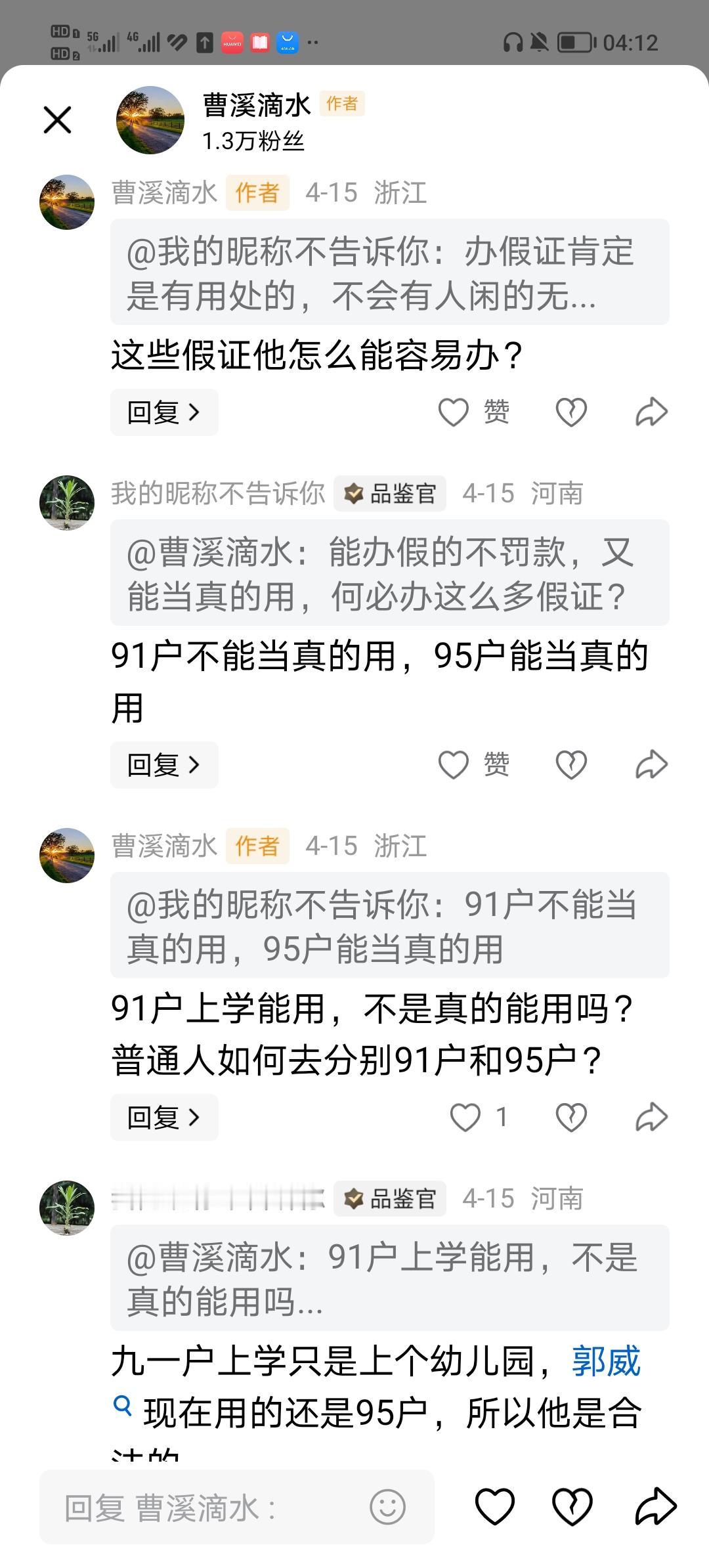 92年的孩子为什么办了一个91户?有网友给出了答案说是上学用,“因为95户影响上学,只好继续造假,不过不是户口,纯假证应付上学”。又有一个网友给出了他对上学用的看法:是学校要求的。“面对学校要求91户?学校不要求92户?别人家的孩子也是这样办的吗?”的疑问,也没有给出对疑问的解释,他也说没有文件认定。 对为什么既办91年纯假户又办95年真假户的说法,这个网友给出的理由是:有特殊情况;91年是纯假户、95年是真的纯假户。这种说法同样没有给出疑问的解释:91户是纯假户,95户也是假户,92年的孩子无论是91年还是95年都是假,而且这个假户都可以使用。同样对91纯假话也没有文件认定。 这个网友还认为:91年假户可以证明某某某做事坦坦荡荡,没有隐瞒。 记得在大媒体上有人认为:办假证还是有本事的。 你是怎么认为91年假户的?
