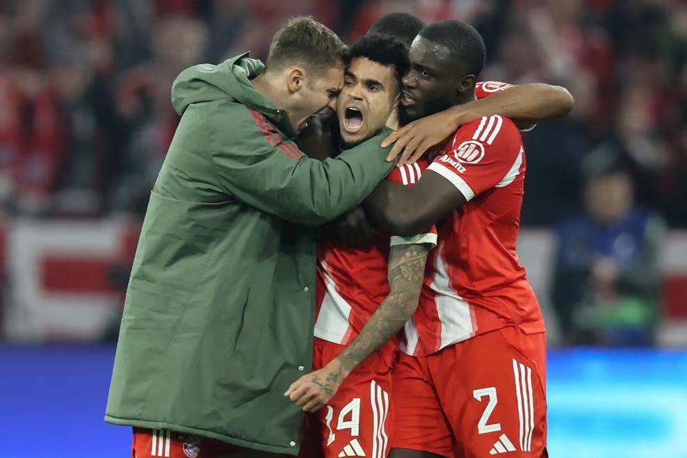 欧冠一夜半决赛对阵确定! 拜仁6-4力克皇马,和大巴黎争夺决赛门票。 北京时间4月16日,欧冠1/4决赛次回合的焦点战,皇马大战拜仁。 比赛的走势让人出乎意料,做客的皇马收获意外之喜,开场仅不到1分钟诺伊尔选择出击传球却送大礼,居莱尔顺势断球吊射空门得手(1-0),闪击破门,极大程度振奋士气,这让结果增添更多的悬念。 拜仁没有被如此突发状况影响,重新调整心态,冷静组织进攻,第6分钟基米希主罚角球传中送助攻,帕夫洛维奇精准抢点头球顶进(1-1),回应来得相当迅速,他们重新掌控主导权。 经过一段时间僵持,皇马再度抓住机会,第30分钟居莱尔主罚任意球直挂死角入网(2-1),独中两元,重新帮助队伍扳平总比分。眼看局势又变得不利,拜仁当家球星挺身而出,第38分钟于帕梅卡诺助攻禁区的凯恩劲射破门(2-2),你来我往真是格外精彩且刺激,不愧是欧洲德比, 比赛第42分钟皇马的快攻配合相当犀利,法国超跑姆巴佩插上推射得手,次回合暂时3-2领先,总比分则处于同一起跑线。 回到下半场的较量,节奏稍有放缓,再无大开大合的进攻表演,彼此投入更多的防守精力,逐渐形成持续拉锯战,考验各自的专注力。时间一点点流逝,第86分钟替补出战的卡马文加领到第二张黄牌,惨遭罚下,此时此刻10打11是成为伏笔。 拜仁没有浪费如此大好局面,第89分钟迪亚斯站出来成为英雄,一记远射撬开对手的球门(3-3),此时此刻已经是总比分领先,但他们并未停下脚步,补时最后奥利塞突入禁区兜射入网(4-3)锁定胜局。 次回合拜仁4-3告捷,两回合6-4淘汰皇马,昂首挺胸晋级四强。至此欧冠四强全部出炉,半决赛对阵是上半区拜仁VS大巴黎,下半区马竞PK阿森纳。