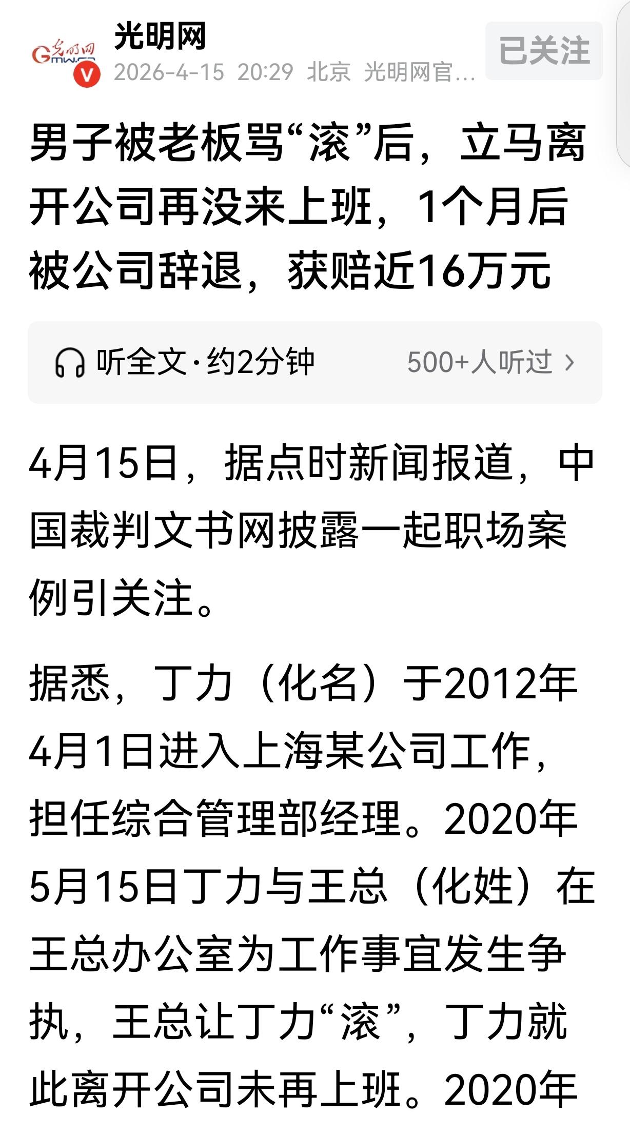 上海,一男子在某公司做经理8年,突然有一天,他跟老板为工作吵了几句,老板骂他“滚”后,男子扭头就走,再没来上班,1个月后,他竟被公司辞退,男子一怒之下申请仲裁,索赔159800元,被拒后,他把公司告上法庭,一审:老板说“滚”,没让你滚出公司,你不上班就是旷工。男子不服提起上诉,二审判决出乎意料。 丁先生最近终于松了口气,他跟公司老板打了大半年的官司,终于尘埃落定。 这半年来,他是身心俱疲,但心里憋了一口气,如今终于扬眉吐气了。 2020年5月15日那天,丁先生在老板王总办公室里,因为项目推进的事,跟老板争得面红耳赤。 丁先生是个负责任的人,他气头上,也没管对方老板的身份,当仁不让。 可把老板气坏了,丁先生挑战了他老板的权威,这还了的,他突然一拍桌子,吼了一句“滚”。 丁先生当下也炸了,自己在公司干了8年,从普通职员熬到部门经理,没功劳也有苦劳,当着下属的面被这么骂,脸往哪搁? 他抓起桌上的包,摔门就走,之后再也没踏进公司一步。 谁知道过了快一个月,公司的辞退通知寄到了家里,理由居然是“连续旷工,严重违反规章制度”。 丁先生当场就懵了:明明是老板把他赶出去的,怎么反倒成了自己旷工? 他第一时间申请了劳动仲裁,要求公司赔159800元的违法解除赔偿金,结果仲裁委没支持他。 不服气的丁先生又把公司告上了法庭。 一审的时候,老板一口咬定“滚”只是气话,不是辞退,是丁先生自己不来上班。 丁先生拿不出证据证明老板是让他彻底走人,一审法院判他输了。 丁先生咽不下这口气,接着上诉。这一次,他把能找到的细节都翻了出来。 从他离开公司那天起,公司从来没主动打电话、发消息让他回去上班,就算后来有工作对接,也只聊事不提回岗的事。 更关键的是,他中途还带着妻子去公司找过老板,说自己想回来上班,老板只让他回去等消息,没给准话。 二审法官把这些细节捋了一遍,最后认定:丁先生当时以为老板让他“滚”是不让他上班,这种想法合情合理。 公司既没明确喊他回岗,也没对他不来上班的事提过异议,现在反过来拿旷工说事,明显是理亏。 于是直接撤销了一审判决,改判公司赔丁先生159800元。 这场官司下来,丁先生说自己也算吃一堑长一智。 跟老板吵架千万别上头,就算被骂了,也得先问清楚到底啥意思,别像他一样差点吃哑巴亏。 而对那些当老板的来说,气头上的话可不能乱讲,一句“滚”,说不定就得给公司掏十几万的冤枉钱。 按理说,职场里拌嘴吵架其实挺常见,但闹到打官司赔10几万的地步,实在不值当。 对员工来说,被老板骂得上头时,真得先沉住气,别像丁先生那样直接摔门走人。 就算要走,也得把话掰扯清楚,不然稀里糊涂被扣上旷工的帽子,有理也说不清。 对老板而言,管理情绪真的是必修课,气头上的话随口一说,看似维护了权威,实则可能给公司埋了大雷,真到赔钱的时候再后悔可就晚了。 职场里不管是员工还是老板,遇事多沟通、少冲动,才是双赢的办法。 《劳动合同法》第39条规定,劳动者严重违反用人单位规章制度的,用人单位可以解除劳动合同。 但本案中,公司以“旷工”为由辞退丁先生,却无法证明已履行通知丁先生返岗的义务,也未对其缺勤行为提出异议,不符合“严重违反规章制度”的认定标准。 因此二审法院认定公司属于违法解除劳动合同,需按照《劳动合同法》第87条规定,支付丁先生二倍经济补偿金作为赔偿金。 对此,你怎么看?