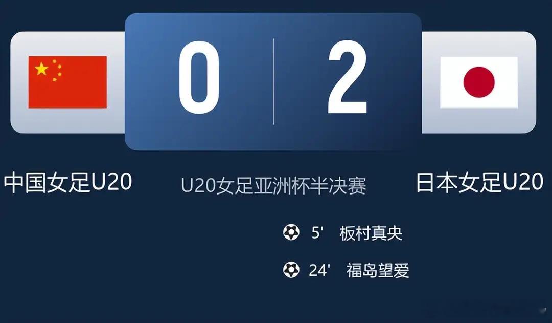 北京时间4月15日,U20女足亚洲杯半决赛迎来焦点对决,中国U20女足对阵日本U20女足,最终中国女足0-2不敌对手,无缘决赛,将与另一支半决赛失利的球队争夺本届赛事的季军。比赛开场仅5分钟,日本队就由板村真央率先破门,第24分钟福岛望爱再下一城,两球落后的中国女足虽全力反扑,但始终无法攻破日本队的球门,最终遗憾落败,日本队则成功晋级决赛,将与朝鲜队争夺本届U20女足亚洲杯的冠军。