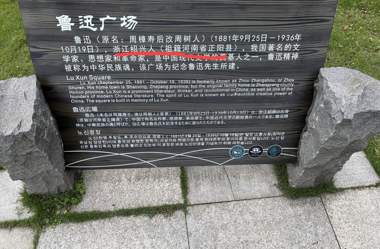 湖北武汉,在东湖生态旅游风景区搞了一个“鲁迅广场”,在介绍鲁迅一栏中,注明了本来是浙江绍兴的鲁迅,祖籍变成了“河南正阳”,这应该绝大部分国人都不知道吧? 据说这个祖籍要追溯到非常久远的宋代,这个祖籍是不是有点忒离谱了? 网友不禁吐槽:要按这么论,几乎所有南方人的祖籍都在河南!河南正阳的网友,你们知道你们这里出过一个叫鲁迅的名人吗?