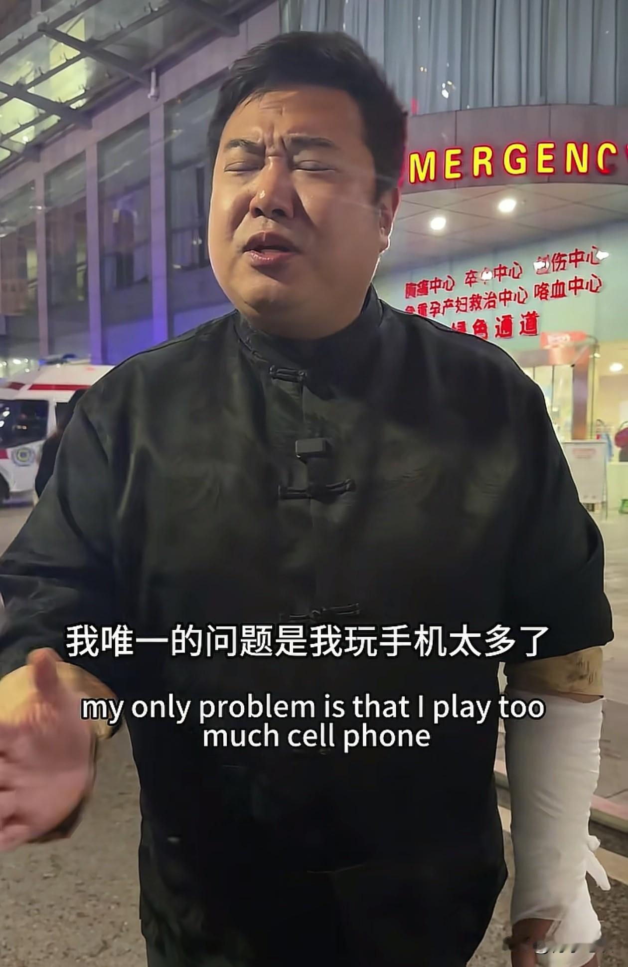 模仿老特的网红瑞哥给自己整进了医院,原因被他妈妈剖析得淋漓尽致,唯一的问题就是玩手机太多了,只要不在睡觉,手上都拿着手机。 此事源于上1期视频,在一家小店吃重庆小面,手上端着面拿着手机,一不小心在凳子上没坐稳,左手在支撑身体时受伤,医生检查后说要做手术,在等到床位后立马就住进了医院。 不过瑞哥的心态非常好,疼得直冒汗还在不停地说“I'm tough(我很坚强)”,在就医和住院期间依然在模仿那位美国人说英语,让人哭笑不得。