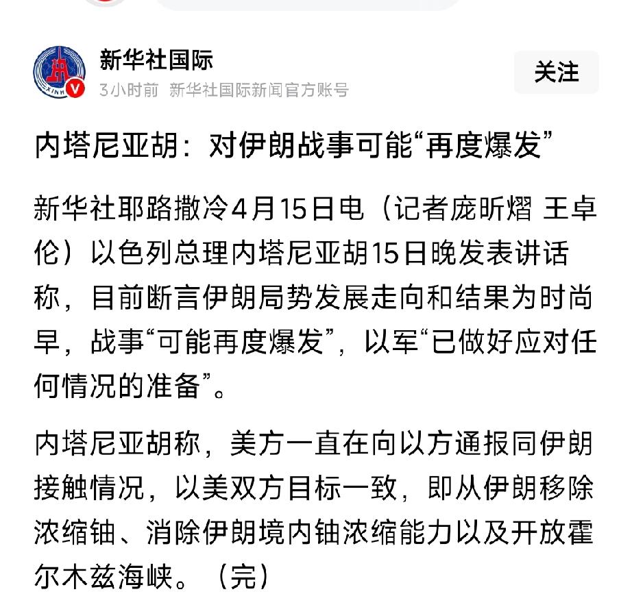 内塔尼亚胡释放重磅信号:对伊战事或再度爆发 地缘风险升级!5大核心投资标的出炉 新华社耶路撒冷4月15日电,以色列总理内塔尼亚胡15日晚发表讲话,明确表示目前无法断言伊朗局势发展走向,对伊战事可能再度爆发,以军已做好应对任何情况的全面准备。同时内塔尼亚胡透露,美以双方目标高度一致,即移除伊朗浓缩铀、消除伊朗境内铀浓缩能力、开放霍尔木兹海峡,打破了此前地区局势缓和的预期。 当前霍尔木兹海峡航运受阻,油轮通行量暴跌,地缘政治持续紧张,直接带动能源、油运、军工、黄金等避险板块迎来行情机遇,以下5大核心投资标的值得重点关注: 1. 中国海油(600938):油气开采龙头,油价上行弹性十足,地缘冲突推高国际油价,业绩直接受益。 2. 中远海能(600026):全球油运龙头,海峡封锁、航线绕行推升油运运费,业绩弹性爆发。 3. 山东黄金(600547):黄金开采龙头,地缘避险情绪升温,金价走高直接增厚企业利润。 4. 航天彩虹(002389):军用无人机出口龙头,中东局势动荡,军贸订单需求持续提升。 5. 中兵红箭(000519):军工弹药核心企业,冲突升级带动弹药耗材需求,业绩具备想象空间。