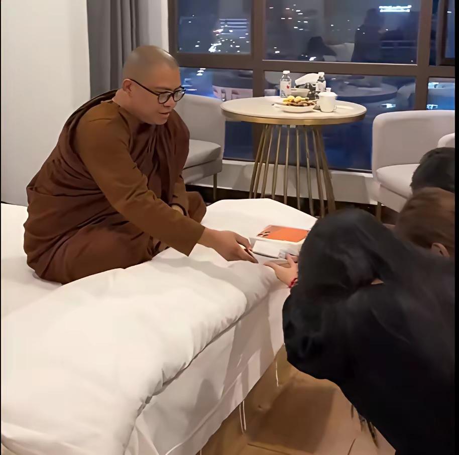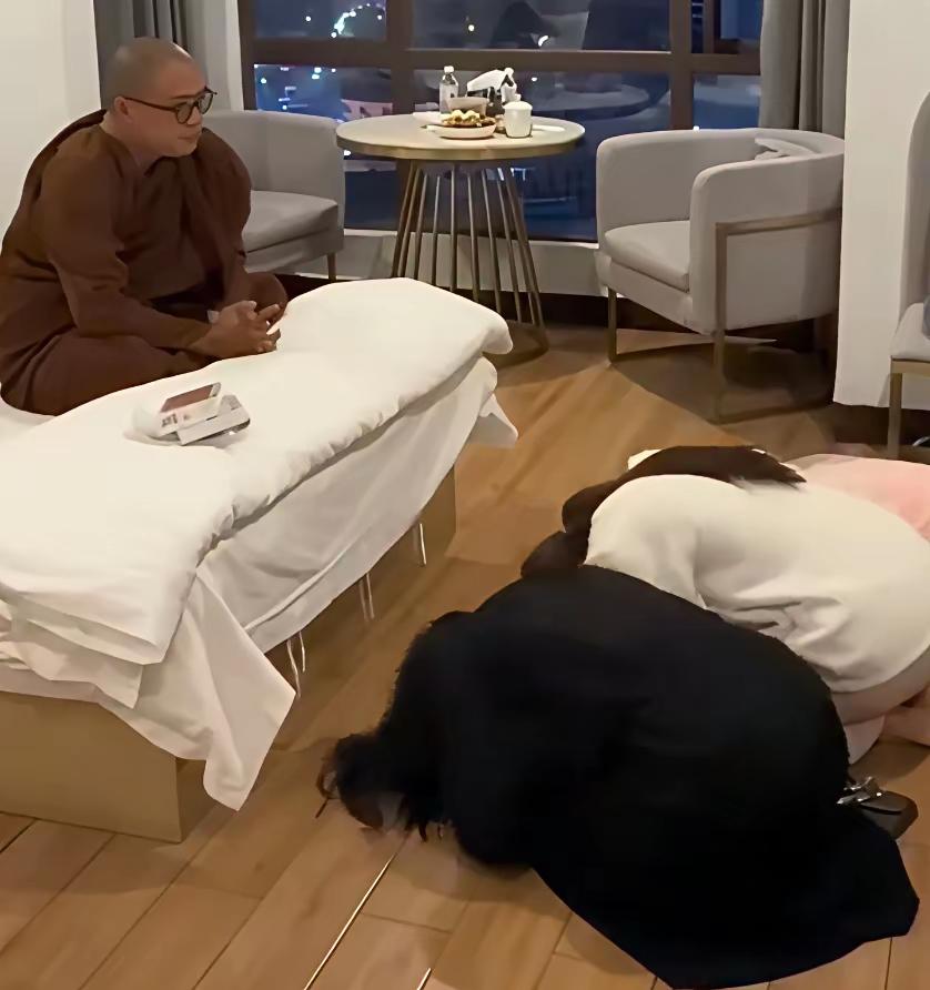 三名年轻女子在酒店客房跪拜“和尚”,还上交了手机,该不会是在拍段子吧? 如果是拜佛祈祷,不应该是在寺庙吗?别告诉大家只是为了单纯讨论佛法。我还是第一次听说和尚在酒店客房给“香客”们传授佛法,这个和尚真的是“心善”又专业啊!