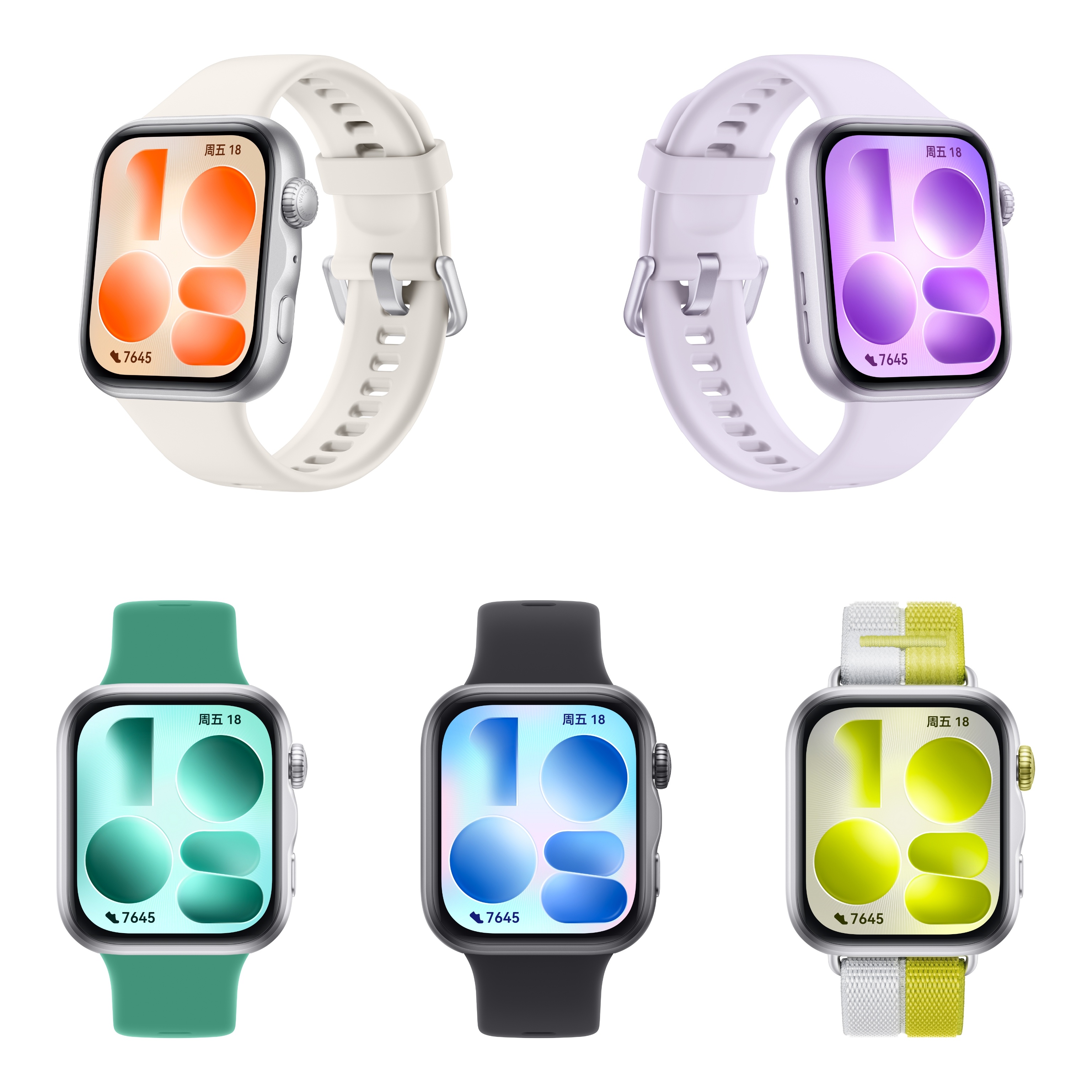 ●FIT 5定义更加潮流轻薄,重量轻至27g,厚度9.5mm,1.82英寸大屏,峰值亮度2500nits;光织银100%再生铝合金+13.75%再生玻纤底壳+表带近乎100%再生尼龙材质,更加环保。配色有韵律黑、悦动白、风信紫、光织银、向新绿。包括专业运动和健康监测都有升级。