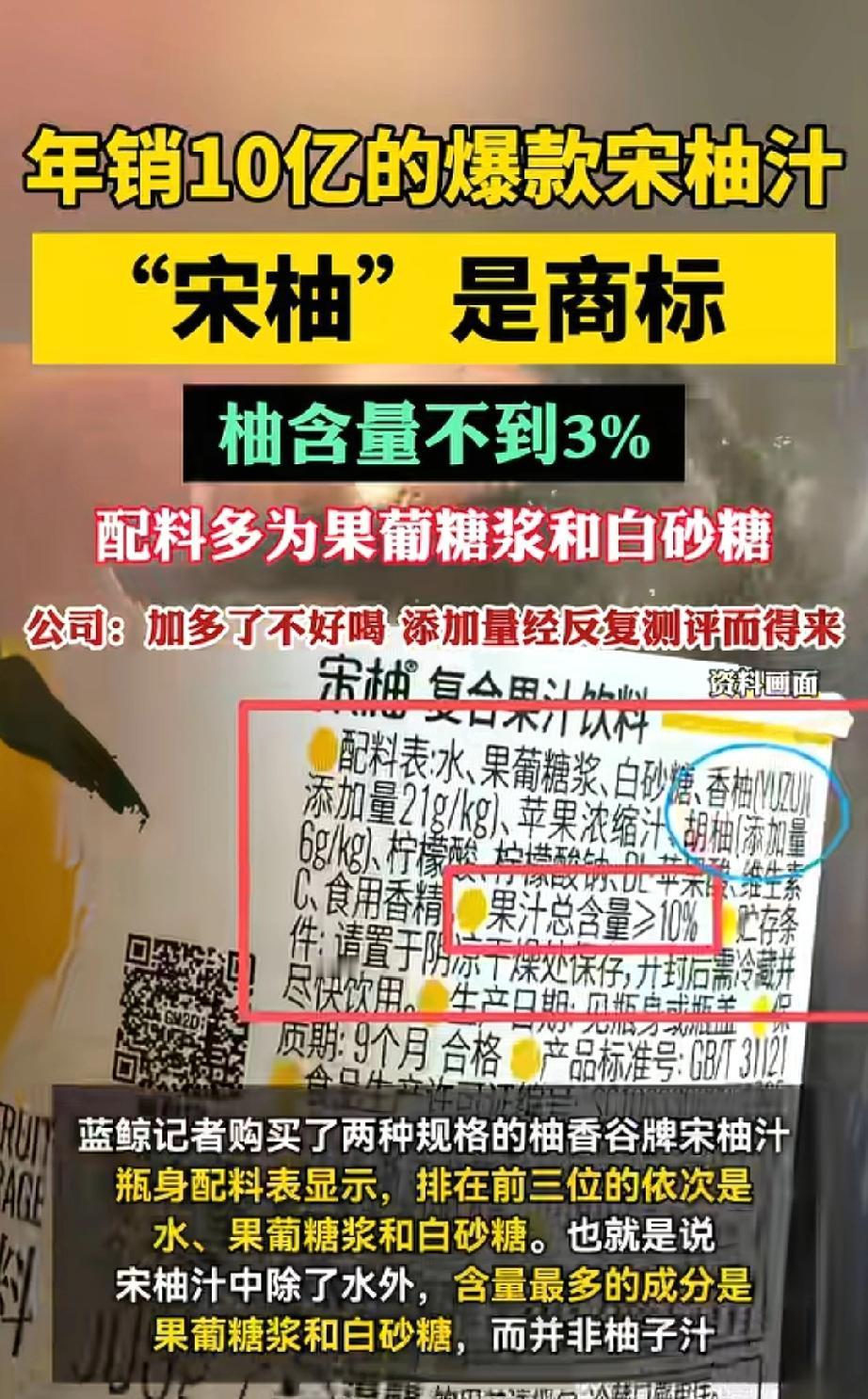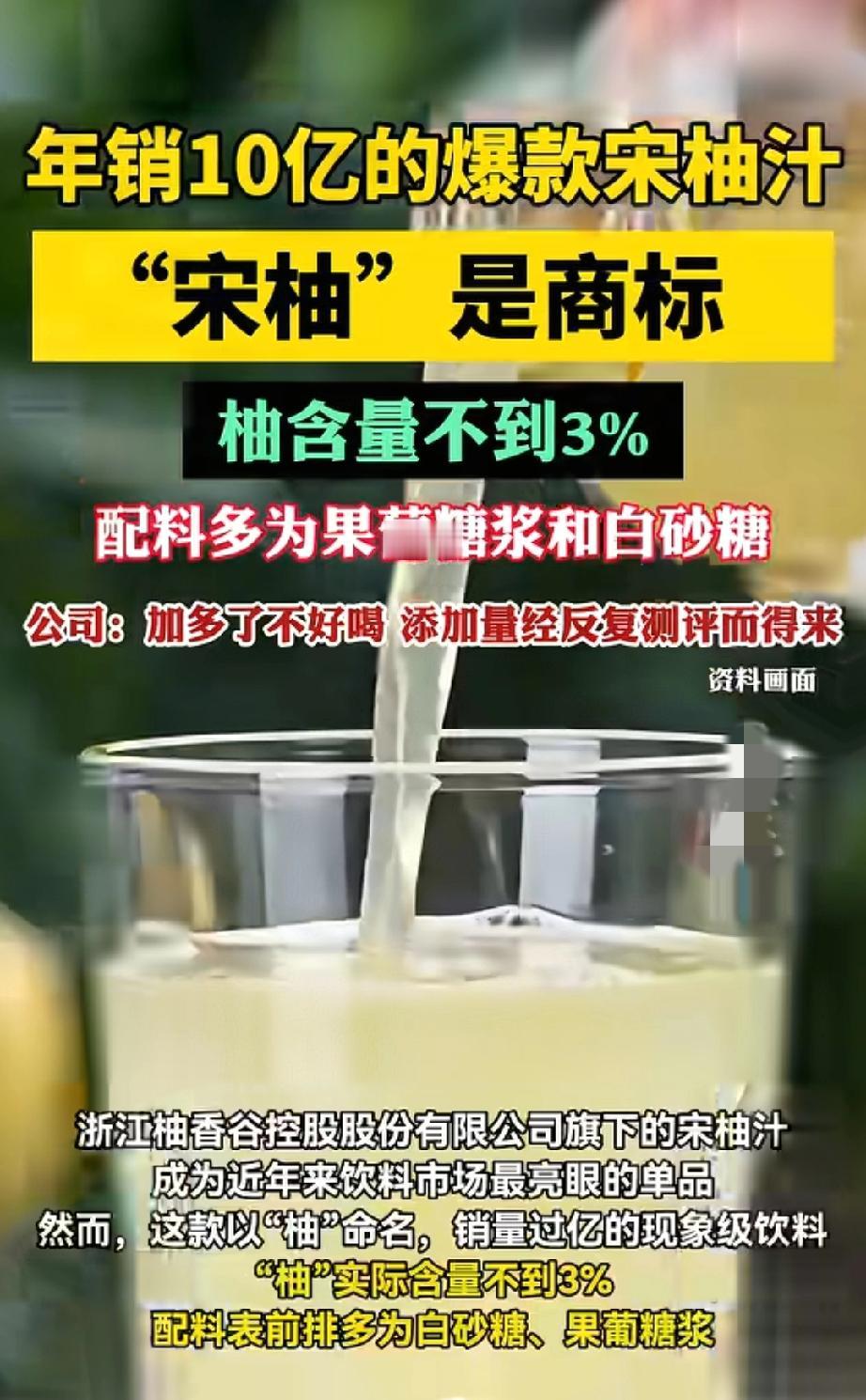 真没想到! 火到不行的宋柚汁, 柚子含量居然不到3%, 我还一直以为是纯柚子汁呢! 喝着挺清爽的、口感也好,难怪这么多人喜欢,年销售10亿,结果一查全是糖浆和糖水,真是妥妥的智商税,以后再也不盲目跟风买了。