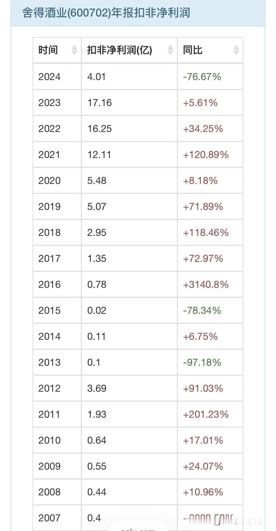 舍得酒业2026年一季度业绩昨天发布了,这是白酒板块今年披露的第一份一季报。 一季度营收14.81亿元,同比下滑6.01%。归母净利润2.32亿元,同比下滑33.10%。扣非归母净利润2.23亿元,同比下滑34.91%。 市场此前预期净利润同比下滑7%,最终数据,远低于预期。也希望其他白酒股能争点气,别辜负白酒投资者的期待。 单看这份财报,有好有坏。 好的地方,一季度依然守住了2亿多的净利润,没亏。不好的地方,营收和净利润的下滑趋势,还在延续。 不过经过这几年的调整,这家全国性白酒企业,当前150亿左右的市值,长期看不算贵。剩下的,只能等大环境慢慢好转。 这一轮白酒的利润调整,看着比上一轮温柔。 上一轮舍得业绩触底,年利润只剩200万。后来靠老酒战略,业绩迎来爆发式增长。 那一轮增长的根源,是中产崛起。居民存款比上一轮白酒周期起点翻了3倍,社会零售总额涨了2倍。 现在不一样了。大家喝酒的频率降了,就算喝好酒的次数多了,也撑不起整个行业的需求。 这次财报里,舍得的存货继续新高,接近60亿。 公司全年营收也就40多亿,存货占营收的比例,已经达到150%。 上一次出现这个比例,是2013到2015年。那三年,公司净利率不到1%,勉强保住利润为正。 这一轮白酒周期,比上一次更难。 产能更多,存货更高。业绩下滑的持续性,大概率会超出所有人的预期。 中小酒企就算市值再腰斩,都难言便宜。除了头部那几家,很多酒企的高光时刻,永远回不去了。是永远。 回头看板块的估值变化,更直观。 2021年2月,上市白酒企业总市值最高摸到5万亿,全年利润1000亿,估值46倍。 2025年,板块总市值大概2.9万亿,全年利润预估1100-1200亿。其中单茅台就贡献了862亿,全靠茅台撑着,估值落到26倍。 现在的行业现状,除了茅台大概率还能维持个位数的小幅增长,其他酒企都陷在激烈的内卷里。营收往下走,利润率还在持续下滑。 本质,就是终端需求不行了。 想要拯救不断蒸发的市值,恐怕只有加大分红力度这一条路。 最后说句实在的。 如果白酒板块真的迎来反转,茅台的弹性大概率是最低的,其次是五粮液、泸州老窖、汾酒这些头部品牌。 弹性最高的,大概率是酒鬼酒、舍得、洋河这类标的。 当然,前提是它们能撑过这轮周期,别真的崩了。 就茅台现在的体量,就算行业真的反转,涨幅也会极其有限。