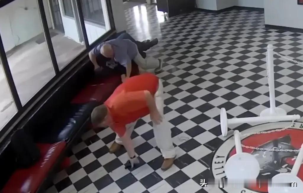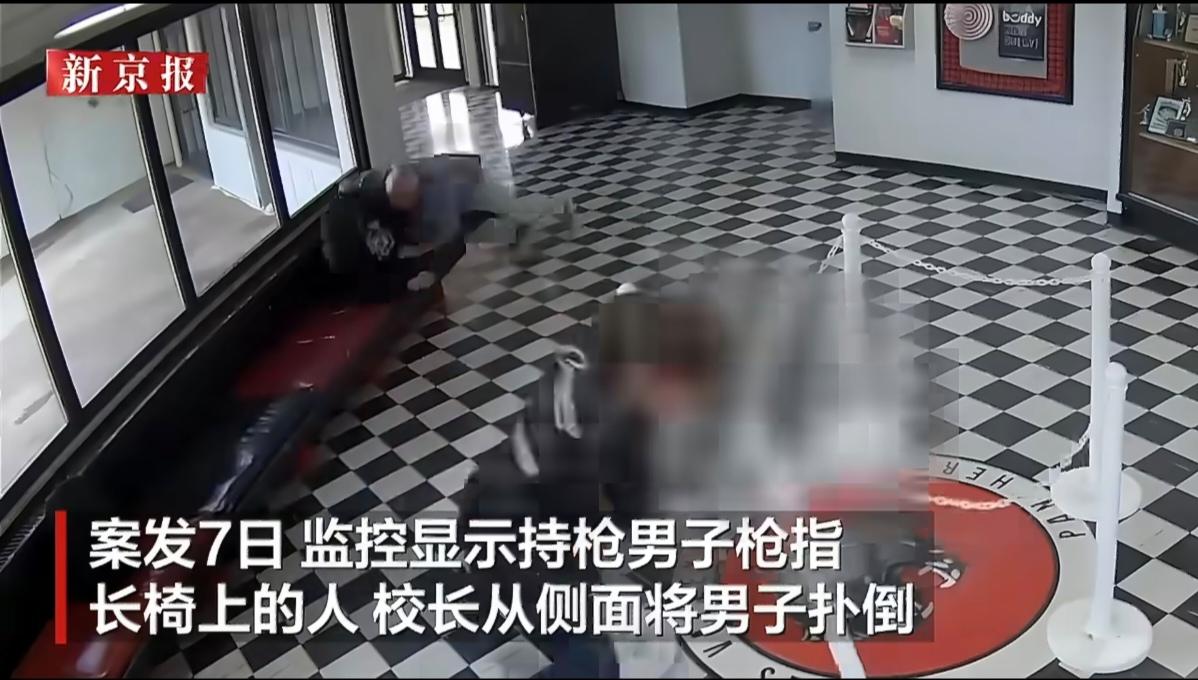 美国残酷的现实,一名白发苍苍的60岁校长腿部中枪独自压制持枪歹徒,全程只有一名员工慢慢吞吞上来帮忙,校长支持到警方到来。 2026年4月7日美国俄克拉荷马州保罗斯瓦利高中枪击案(监控4月14日曝光)。 现场枪手:20岁前学生维克多·霍金斯,带两把装满子弹的半自动手枪,想模仿科伦拜惨案。 校长:柯克·摩尔(60岁),听到枪声后冲出办公室。 枪手在大厅命令师生趴下,瞄准学生开枪(卡壳)。 摩尔校长从侧面猛扑,把枪手死死按在长椅上。枪手近距离开枪,校长右腿中弹,仍死死按住其手腕、夺枪。 全场只有1名工作人员慢慢走过来帮忙, 其他人要么跑、要么躲。 校长坚持到警方到场,无学生伤亡。 60岁校长:迎着枪口冲上去、中弹不松手、 独自硬扛20岁枪手,随时随地有殉职可能。 其他员工围观、逃跑、躲起来;只有1人慢悠悠上前,全程几乎没帮忙。 学生四散奔逃,没人敢上前。 网友扎心评论: “一个老人护着一群年轻人,真讽刺。” “校长是英雄,其他人是看客。” “美国校园枪击的真相:靠校长肉身挡子弹, 其他人只会躲。” 60岁校长独力制服持枪歹徒、中弹仍不松手; 全场只有1名员工慢吞吞上前,其他人全在逃跑或围观-这就是美国校园枪击最真实、最扎心的一幕。