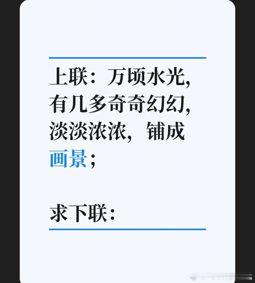 上联:万顷水光,有几多奇奇幻幻,淡淡浓浓,铺成画景;