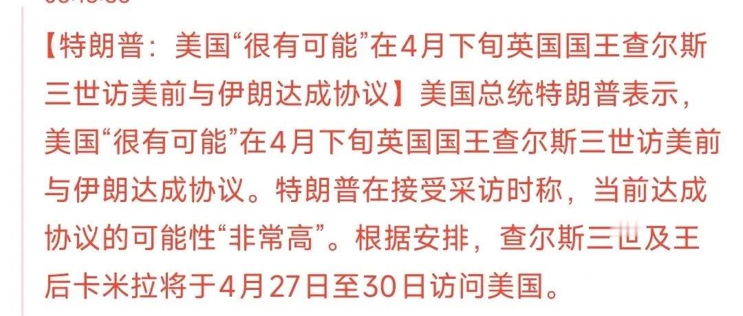 伊朗这是奔着第二次达成协议来做的,而特朗普现在也宣布将会在4月下旬可能达成协议,双方都有意达成协议,第二次谈判还是很有希望的,至少霍尔木兹海峡是有希望通航的,这对渴望和平的人民来说是一个最好的消息了。