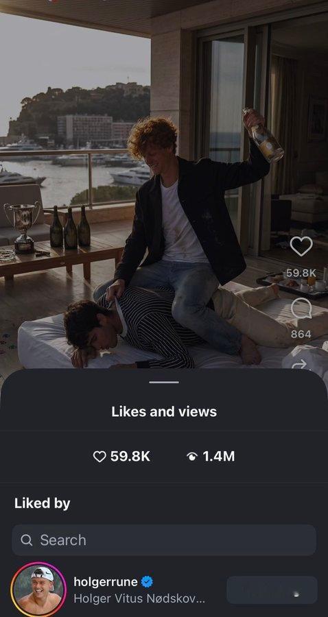 鲁内很喜欢凑热闹哈,点赞了一条关于辛纳阿卡有点离谱并带有恶趣味的ai视频。内内还是那个内内
