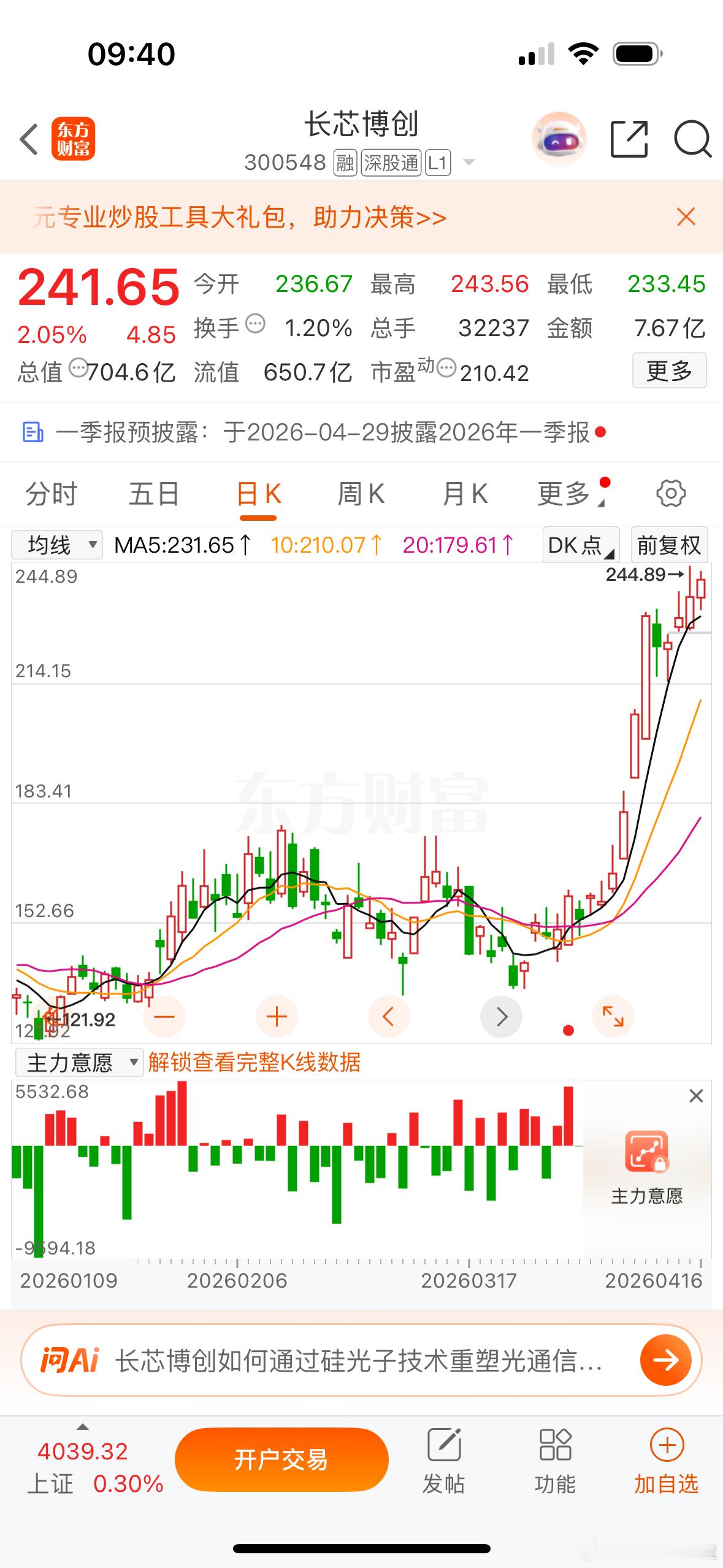 $长芯博创 sz300548$ 厉害,继续新高,没看错你
