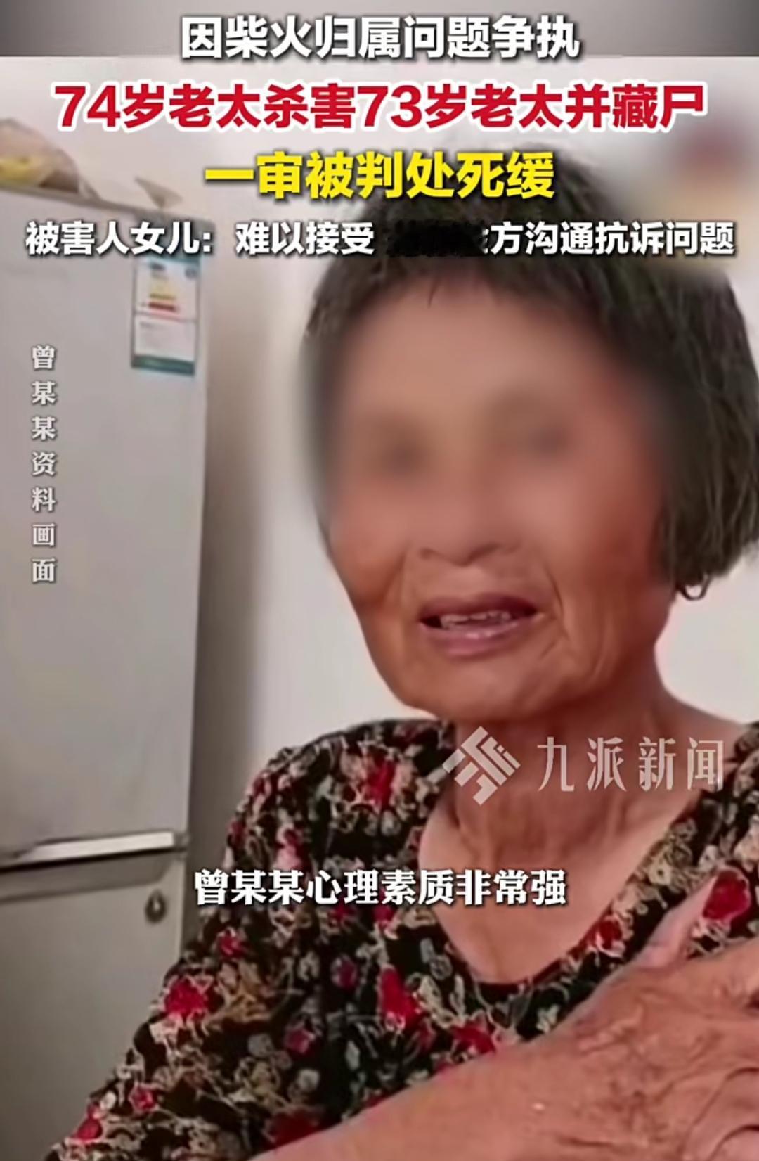 杀人并藏尸,这74岁老太下手太狠,心理素质还不是一般的好。 74岁杀73岁,就为几根柴火?死缓一判,我是真不服 刷到这条新闻的时候,我整个人都愣住了。不是因为案子多离奇,而是因为,一条人命,就值几根柴火? 江西瑞金,两个老太太,一个74,一个73。就因为一捆柴火归谁,74岁的那个,抄起石头就往73岁那个太阳穴上砸。一下两下?不,十几下。砸完了,还拖到脐橙园里埋了。 这不是冲动,这是奔着要命去的。 更让人后脊背发凉的是什么呢?杀人之后,这老太太该干嘛干嘛,柴火照搬回家,街坊聊天照去,警察来了她还在旁边看热闹,发毒誓说跟自己没关系。这叫什么事儿? 行,案子判了:死刑,缓期两年执行。理由两条,作案时没满75?不对,审理时已满75岁,加上有坦白情节。我就想问问:年龄大就能这么杀人吗? 74岁,身体好得能骑在别人身上连砸十几下,埋尸力气也足,怎么一到判刑就变成“老弱病残”需要照顾了? 再说坦白。她那是真心悔过吗?根据报道,归案后毫无悔意,庭审上还恶言相向。尸体被发现前,她天天演无辜;证据甩脸上,她才不得不认。这叫坦白?这叫不认不行。 受害者的女儿毛女士说得对:“年龄大绝不是免死金牌。”这句话,我举双手赞成。 你想想那位73岁的老太太,老老实实过日子,为几根柴火跟人拌了两句嘴,命就没了。尸体在脐橙园里埋了十来天,还是因为臭出来了才被发现。 她女儿说去年三次梦见妈妈,最后一次梦见妈妈被伤得住院两百多天……我一个大男人看到这儿,眼眶都红了。 杀人者活下来了,被害者连个全尸都没保全。 法律讲人道主义,我懂。可人道主义是给谁用的?是给那个骑在人身上砸太阳穴十几下、事后还若无其事搬柴火的人用,还是给那个无辜惨死、埋在地里发臭的老人用? 更让人寒心的是,赔偿只有丧葬费,四万八千多。一条命,连五万块钱都不到。 我支持受害者家属继续抗诉。这个案子要是就这么算了,我真怕以后村里吵架,人手一块石头就敢往死里砸,反正年纪大了,死缓一判,熬过两年就变无期,再熬几年出来了,又是一条好汉。 别拿年龄当杀人的挡箭牌。 恶就是恶,跟岁数没关系。 希望二审能给个让人服气的说法。不为别的,就为让所有人都知道:你多大岁数,杀了人,都得拿命来偿。