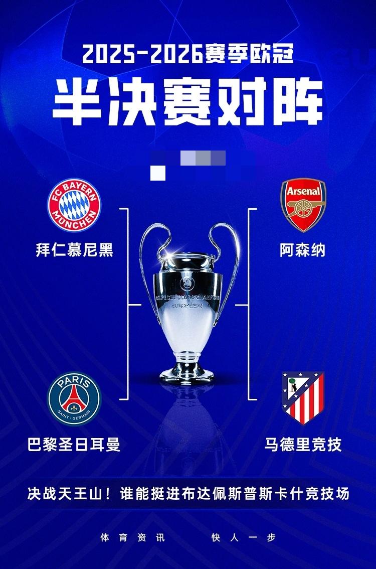 欧冠半决赛对阵出炉:巴黎vs拜仁,马竞vs阿森纳 4月16日 欧冠1/4决赛结束,半决赛对阵出炉:拜仁大战巴黎,阿森纳将战马竞