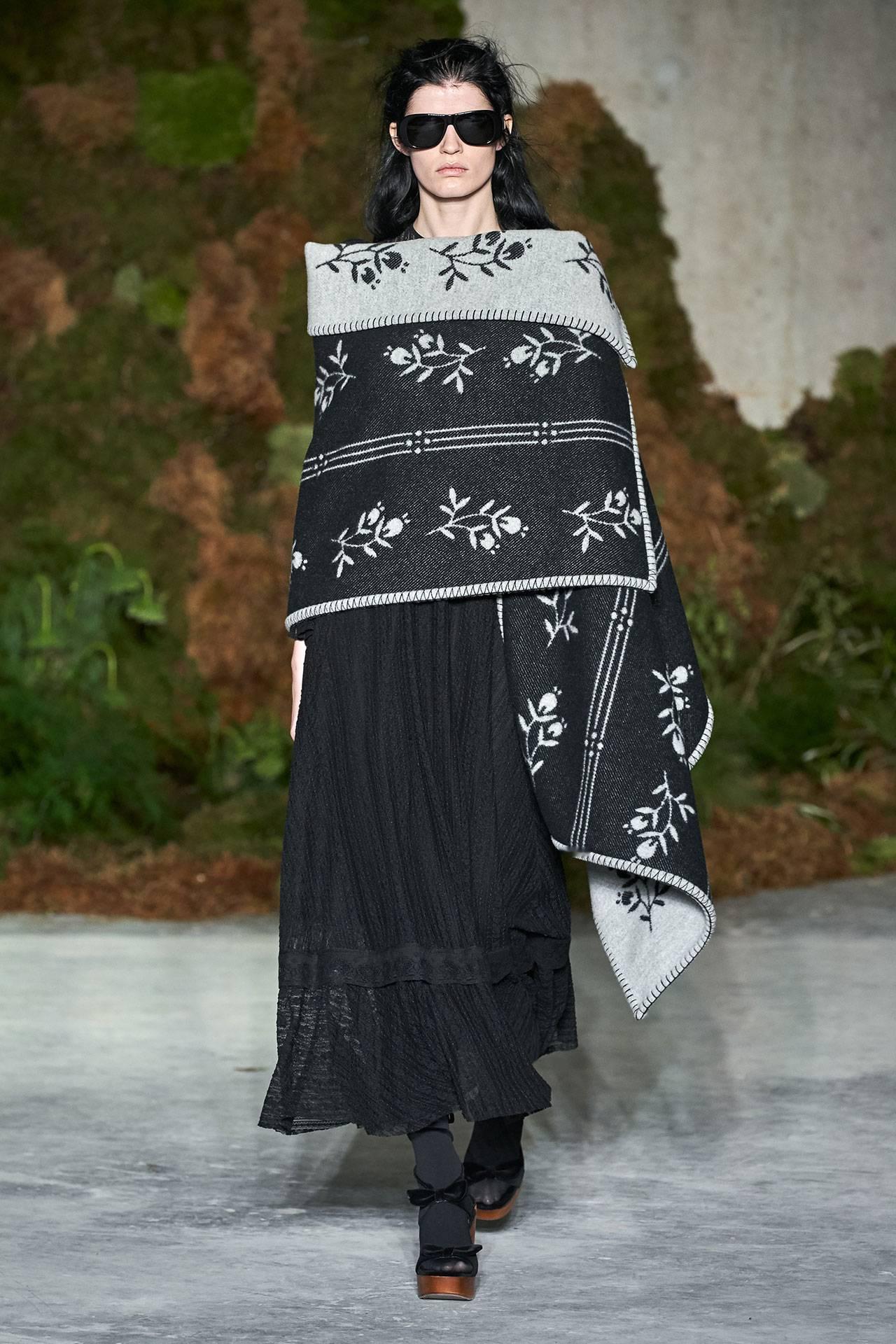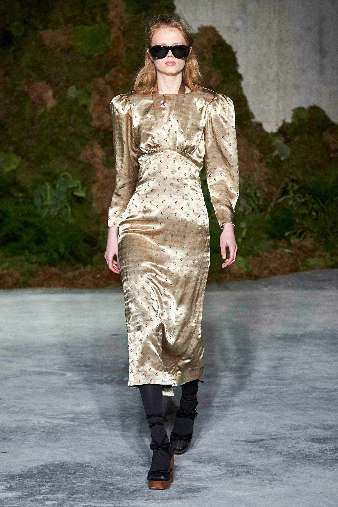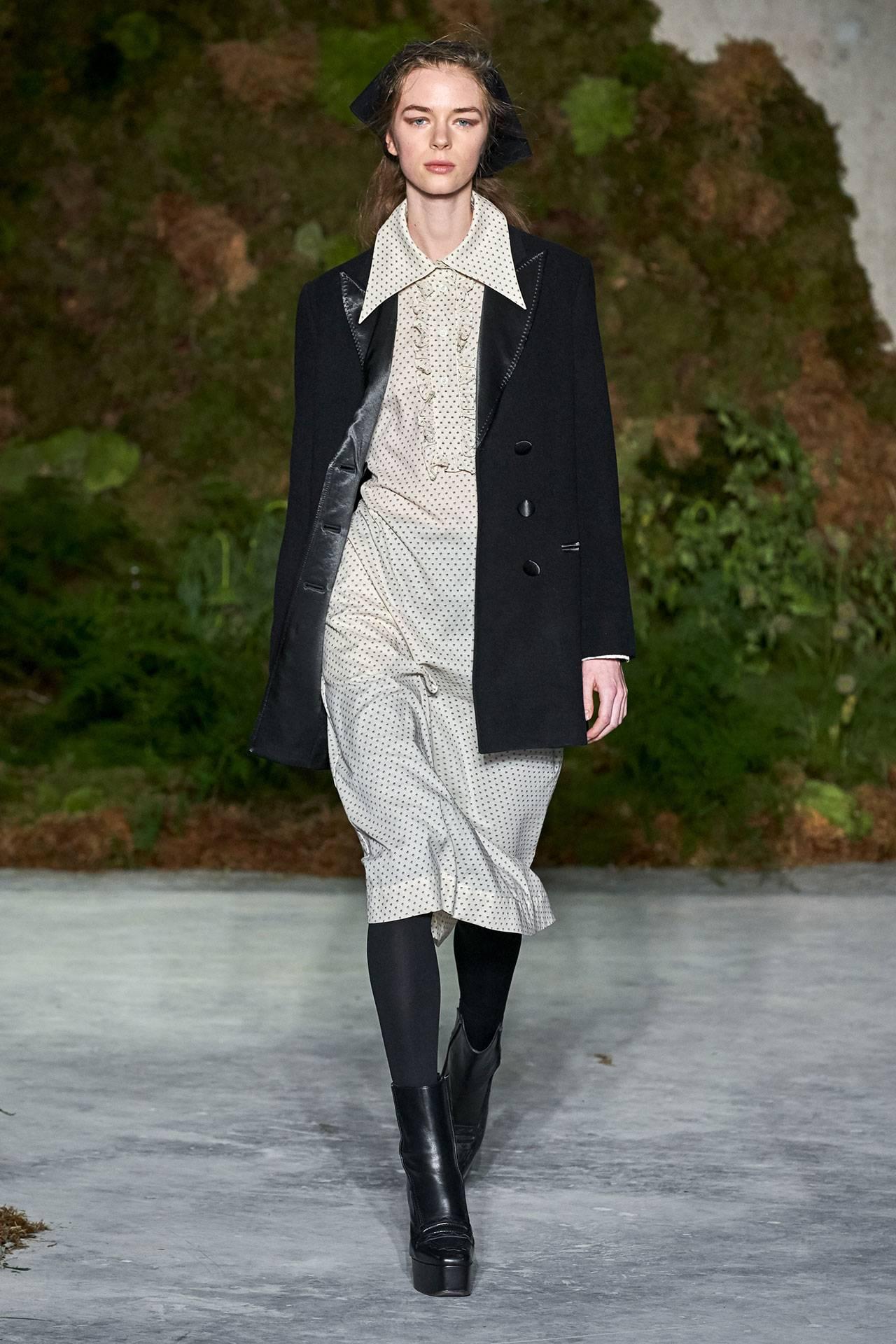 Alexa Chung的2019秋冬系列,是我心中被低估的经典之一。那年伦敦时装周,她在地下空间里种下红木和苔藓,让鸟鸣代替音乐。然后走出来一群看似狼狈却眼神坚定的女孩。她们穿着粮袋做的荷叶边上衣、反光的漆皮风衣。这场秀不叫“毁灭”,叫“准备回归”。如果你正经历低谷,想想这群女孩——你也可以。