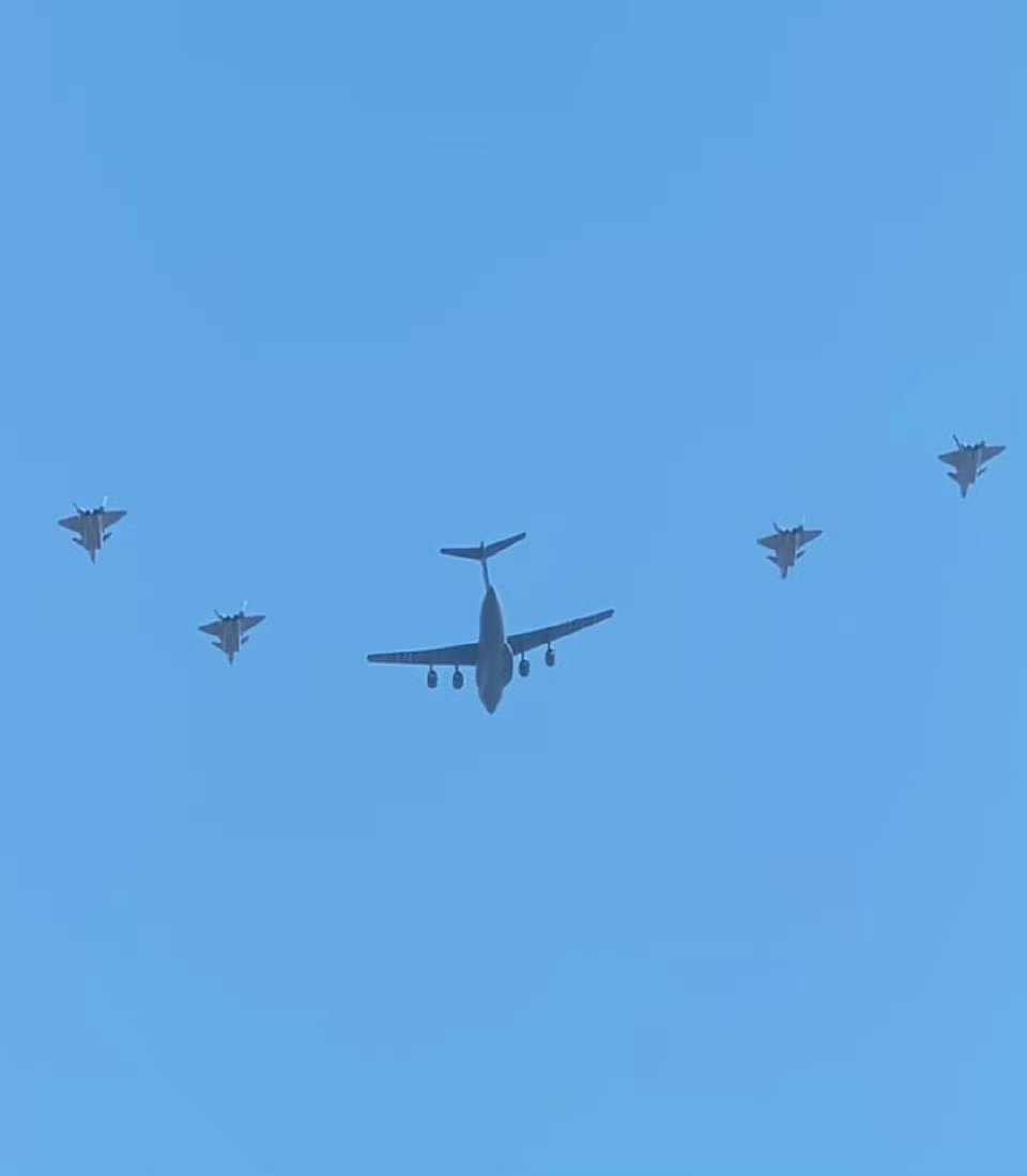 今年运送志愿军烈士遗骸归国的运-20B,正与4架护航的歼-20进行彩排。烽火问鼎