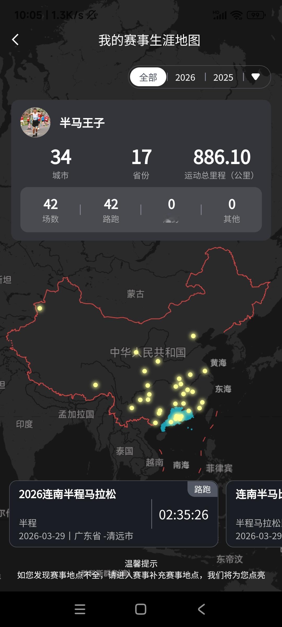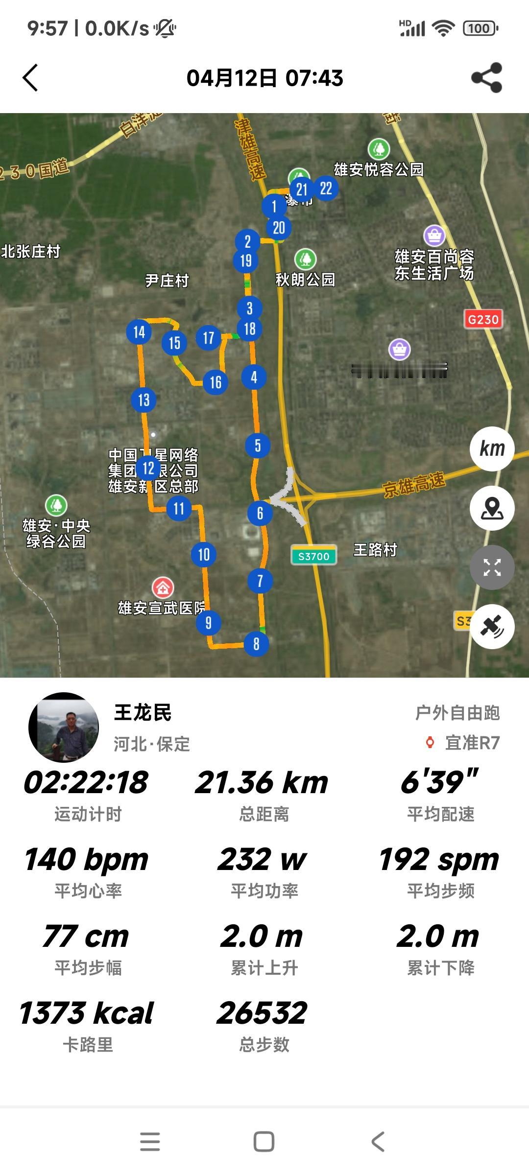 连续参加马拉松半马比赛,既要保存状态,又不能太累。只能减量保持速度。才能保证参加比赛安全完赛。 雄安马拉松比赛完第一跑,七公里配速639,达到了七分配的目标。心率124应该可以。 明天早上再来七公里,后天出发去梧州。2026年第六场半马比赛梧州半马比赛,安全完赛就好。 【威赢赛事】亲爱的王养朝,您参加的2026翅冀钢铁梧州半程马拉松将于4月19日 开跑,参赛物资领取信息如下: 领物时间:4月16日:10:00-20:00 4月17日:9:00-20:00 4月18日:9:00-22:00 领物地点:梧州市政广场 温馨提示:仅限本人携有效证件领取,不接受代领。参赛日不设置领物,请合理安排时间前往领取。更多赛事信息,敬请持续关注官方公众号梧州文旅或威赢赛事。