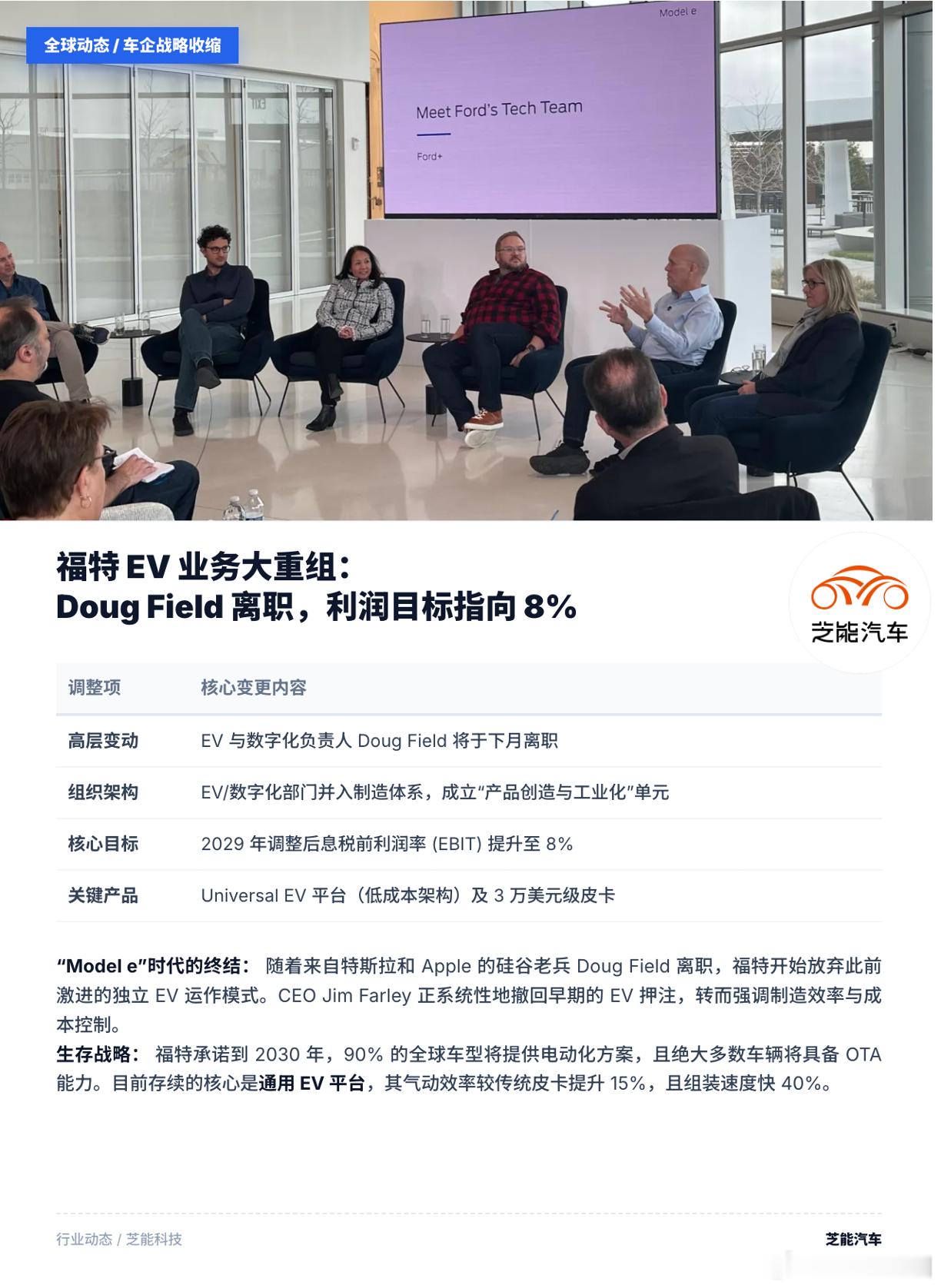 Model e这套“电动独立军”的打法宣告阶段性结束,新架构下,电动、软件、设计被并入制造体系,由COO Kumar Galhotra统一管理,成立“产品创造与工业化”部门。用硅谷思维做软件定义汽车,用组织拆分来加速创新,现在Game Over了。回归要缩减成本,围绕8%利润率目标服务,回到制造驱动。