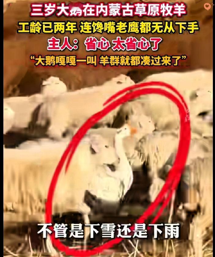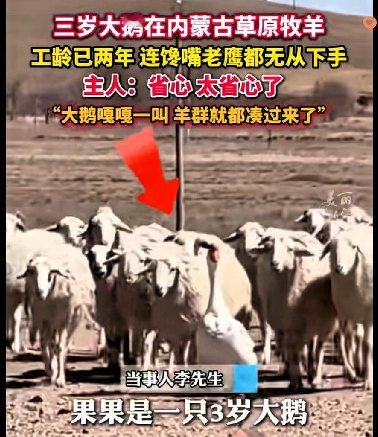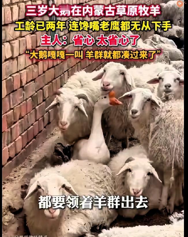 万万没想到!大鹅跨界当牧羊司令,这波逆袭太惊艳 谁能想到,原本只会打架惹事的大鹅,换个环境直接逆袭成羊圈霸主,把一百多只羊管得明明白白,这只叫果果的大鹅,简直把生存之道玩透了! 主人只是把它放到羊圈避祸,没想到它凭借天生的领导力,硬生生当上了“鹅司令”。 每天准时带队放牧,来回十几公里零差错,调皮的小羊被它管得服服帖帖,不管严寒酷暑都兢兢业业,比专业牧羊犬还靠谱。 其实果果的走红,从来不是巧合。它没有安于被圈养的生活,而是找准了自己的优势,把天性变成了谋生的本事,直接摆脱了被炖的风险,活成了家里的团宠。 这何尝不是给我们的启示,不管是人还是动物,找到适合自己的位置,发挥自身长处,就算是平凡的起点,也能活出不一样的价值。有一技之长,永远是立足的底气。 你身边还有这种跨界开挂的小动物吗?