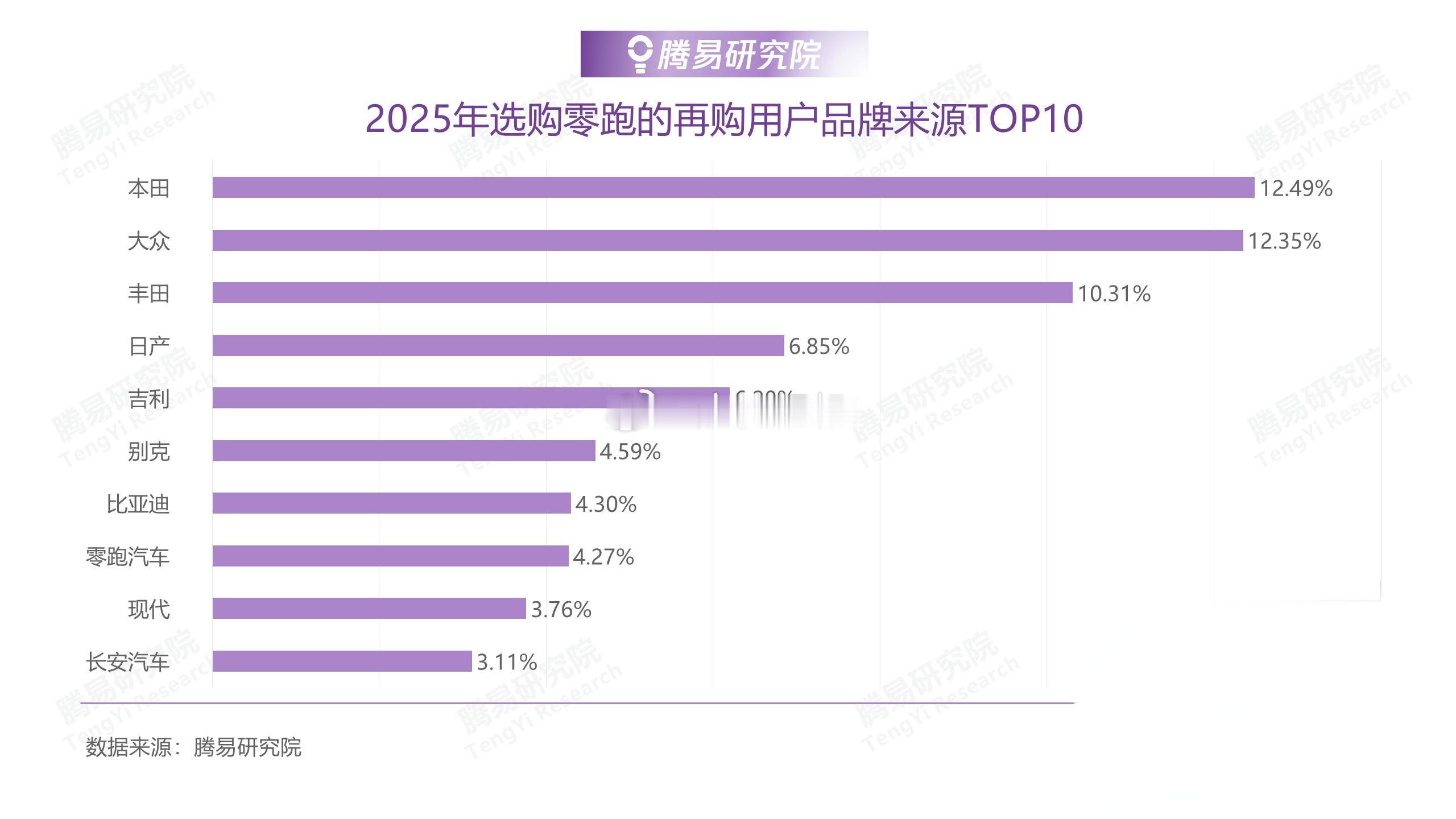 2025年,本田、大众、丰田、日产与吉利位居零跑汽车再购用户品牌来源排行TOP5。
