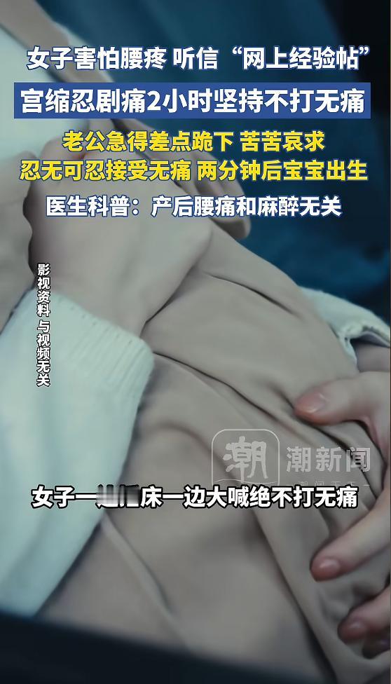 “没苦硬吃!”近日,广东深圳,一产妇因宫缩剧烈呕吐,她听信网上“打无痛会腰痛”的传言,就算医生和助产士反复科普,她仍然拒绝打无痛,陪产的老公看着她疼痛大叫捶床,也心疼地哀求她,最终女子忍不住疼痛,同意打无痛!网友:白遭罪! 事情发生在深圳一家医院的产房里,凌晨的产房格外安静,只有胎心监护仪的跳动声,屏幕上的数字不断攀升,宫缩曲线也画出了一道陡峭的弧线,预示着产妇即将迎来最艰难的时刻。 这位产妇叫晓晓,此刻正蜷缩在产床上,浑身被汗水浸透,狼狈不堪。床边的桶里,装着她刚吐出来的黄绿色液体,看得出来她已经承受了极大的痛苦,这并不是她第一次经历宫缩,两个多小时前,她就被紧急送进了产房,一开始还想着凭自己的意志力撑过去,觉得忍一忍就过去了,可真正的疼痛,远比她想象的要剧烈。 每次宫缩袭来,那种疼痛感就像有一只看不见的手,从腰侧伸进去狠狠拧动,拧完松开,紧接着又是新一轮的拧动,循环往复,没有片刻停歇,晓晓咬着嘴唇,一直强忍着不发出声音,可身体却藏不住她的痛苦,浑身抖得像筛糠,胃里翻江倒海,一次次呕吐脸色青得吓人,整个人都没了往日的精气神。 一旁的护士见她痛苦难耐,小心翼翼地为她清理呕吐物,同时轻声劝慰,提议她打一针无痛分娩,如此一来,既能大幅减轻疼痛又可保存体力,为后续的生产做准备,可面对护士的好心建议,晓晓只是一个劲地摇头,摇得格外坚决,在她眼里那针无痛分娩,比毒药还要可怕,哪怕疼到极致也绝不肯打。 她之所以这么固执,全是因为怀孕期间在网上看到的那些内容,不管是育儿论坛里的帖子,还是短视频平台的分享,成百上千条内容都在传递同一个说法,打无痛腰会废,有人现身说法,说自己产后三年腰都直不起来,稍微动一下就疼,还有人举例子说自己的表姐打完无痛,才四十岁就已经驼背了。 这些帖子的点赞数动辄几千上万,评论区里全是附和的声音,看得多了晓晓心里的恐惧就越来越深,暗暗下定决心,宁可疼死在产床上,也绝不给后半辈子的腰埋雷。 产房里晓晓的丈夫全程陪在身边,眼睁睁看着妻子从一个鲜活的人,变成一团蜷缩在产床上的影子,每次宫缩来临,晓晓的手指就死死抠住床沿,骨节都泛了白,喉咙里发出闷闷的嘶吼,那种痛苦隔着一段距离都能感受到,他试着去握妻子的手,却发现那只手冰凉得像一块铁,没有一丝温度。 看着妻子备受煎熬,丈夫心里急得像热锅上的蚂蚁,从一开始的低声商量,劝她接受无痛,到后来带着哭腔恳求,到最后甚至想当场跪下,只希望她能少受点罪,晓晓不是不心疼丈夫,也不是不信他的话,只是网上铺天盖地的“忠告”,已经填满了她的整个信息世界,在她看来丈夫不懂,医生也不懂,只有那些“过来人”的经历才是真的,那些帖子里的每一个字,都在提醒她,打无痛一定会后悔。 又一轮剧烈的宫缩袭来,晓晓再次呕吐,吐到最后只剩下黄绿色的胆汁,整个人像从水里捞出来一样,浑身无力连抬手的力气都快没有了,那一刻她彻底崩溃了,对着护士轻轻点了点头,终于放下了自己的固执,同意打无痛,曾经在她眼里比毒药还可怕的针,此刻成了她唯一的救命稻草。 等她再次醒来时,宫口已经开全,攒足了体力的她,配合着助产士的指令,没费太大的力气,就顺利把宝宝带到了这个世界上,丈夫抱着刚出生的宝宝,眼眶红了一圈又一圈,既心疼妻子之前受的罪,又庆幸她最终选择了无痛,没有再硬扛。 这件事被分享到网上后,网友们纷纷评论,都说晓晓是白遭罪,其实仔细想想,这也不能全怪她,在这个信息爆炸的时代,算法总能精准捕捉到人的焦虑,然后一个劲地投喂相似的负面内容,久而久之,错误的信息就会构建起一个人的认知框架。 专业的医学科普,终究抵不过带有情绪的“过来人”分享,毕竟情绪比逻辑更有力量,故事比数据更打动人,晓晓用两个多小时的剧痛,换来一个清醒的认知,有时候比“不知道”更危险的,是“你以为你知道”,而我们每个人都有可能成为下一个“晓晓”。 (信息来源:《女子害怕腰疼听信“网上经验帖”,宫缩忍剧痛2小时坚持不打无痛,老公急得差点跪下苦苦哀求,最终妻子忍无可忍接受无痛,两分钟后宝宝出生。医生科普:产后腰痛和麻醉无关》潮新闻)