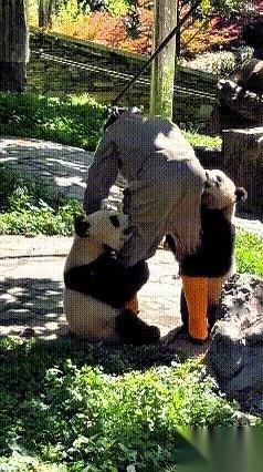 饲养员提着扫帚刚踏进院子,就感觉不对劲。 左边一个黑白影子滚过来,右边一个也滚过来。下一秒,他两腿一沉,低头一看,两条腿已经不属于自己了。 左腿上挂着一个,右腿上也挂着一个,俩毛茸茸的“腿部挂件”用爪子死死箍住,一脸“你今天哪儿也别想去”的表情。 饲养员试着抬了抬左脚,右边的挂件立马抱得更紧。他无奈地换了换重心,想抬右脚,左边的挂件直接把整个身子都压了上来。 他手里那把准备打扫卫生的扫帚,就这么尴尬地悬在半空,成了个摆设。 玻璃墙外,游客们的手机已经举成了一片小林子,闷笑声先是零零星星,接着汇成了一片控制不住的哄笑。 饲养员叹了口气,干脆放弃挣扎,任由那俩家伙把他当成个人形爬架。 好不容易,他瞅准一个空当,猛地把腿抽了出来,撒腿就想跑。 结果身后的两个小家伙反应更快,连滚带爬地就追了上来,那架势,活像是两个追着爸妈要糖吃的小孩。 说真的,这班上的,到底是伺候国宝,还是来渡劫的?