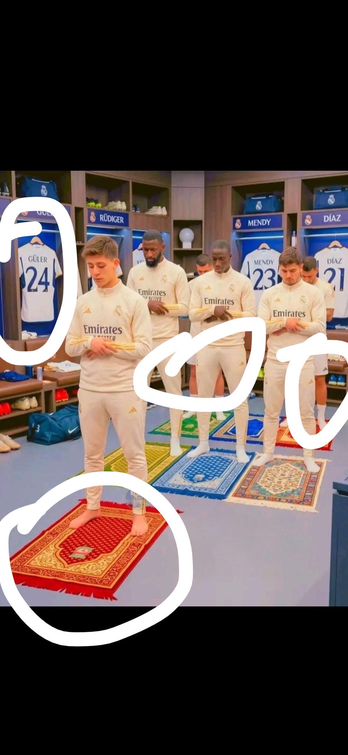 皇马球员在更衣室祈祷?球迷:这是一眼假的AI图片 皇马更衣室有不同的信仰,这几位绝不可能一起公开祈祷。 “有球迷表示,别再发这种 AI 生成的垃圾图了。居莱尔怎么会在利物浦的祈祷毯上?那球衣字体一看就是 23/24 赛季的,而且后面那俩人穿个大短裤就在祈祷,这哪行啊,完全不合规矩。”