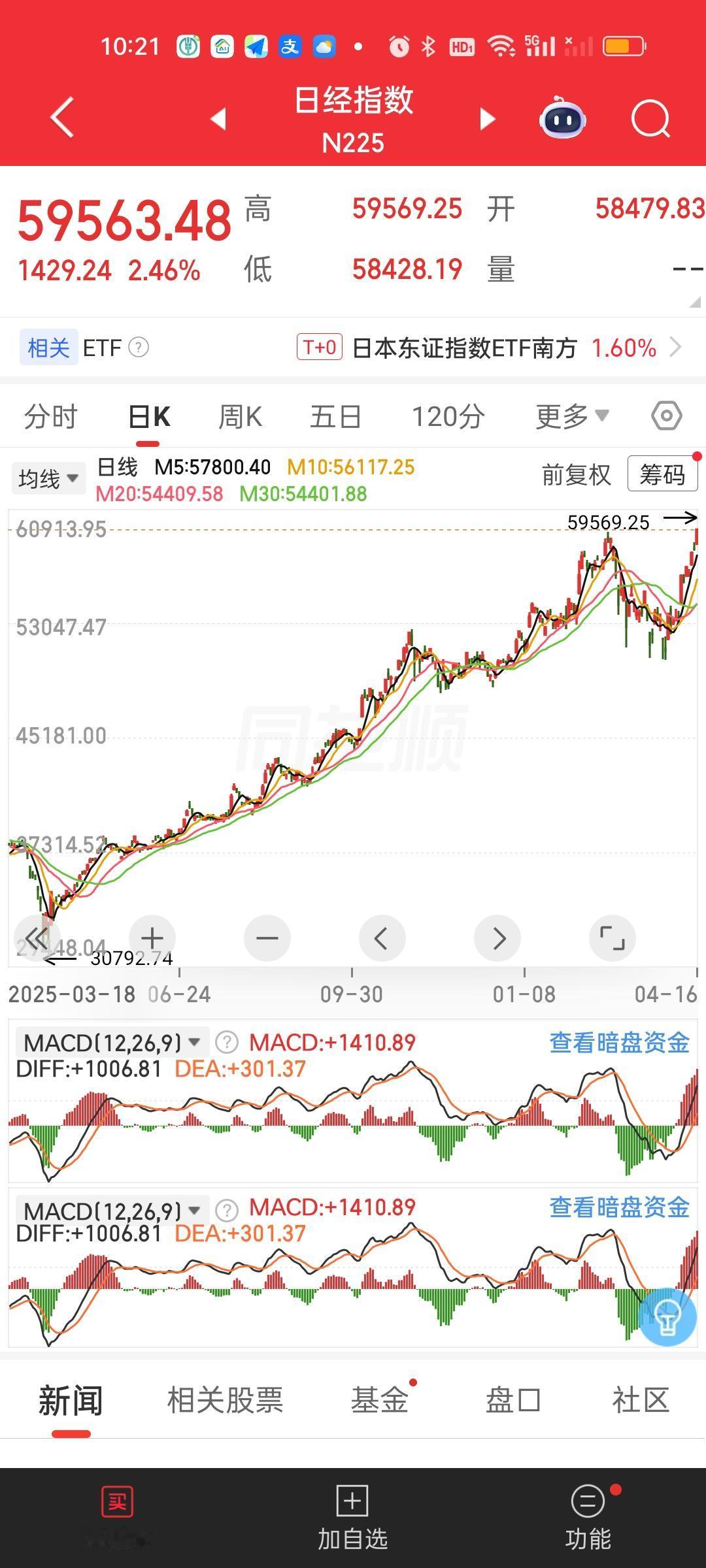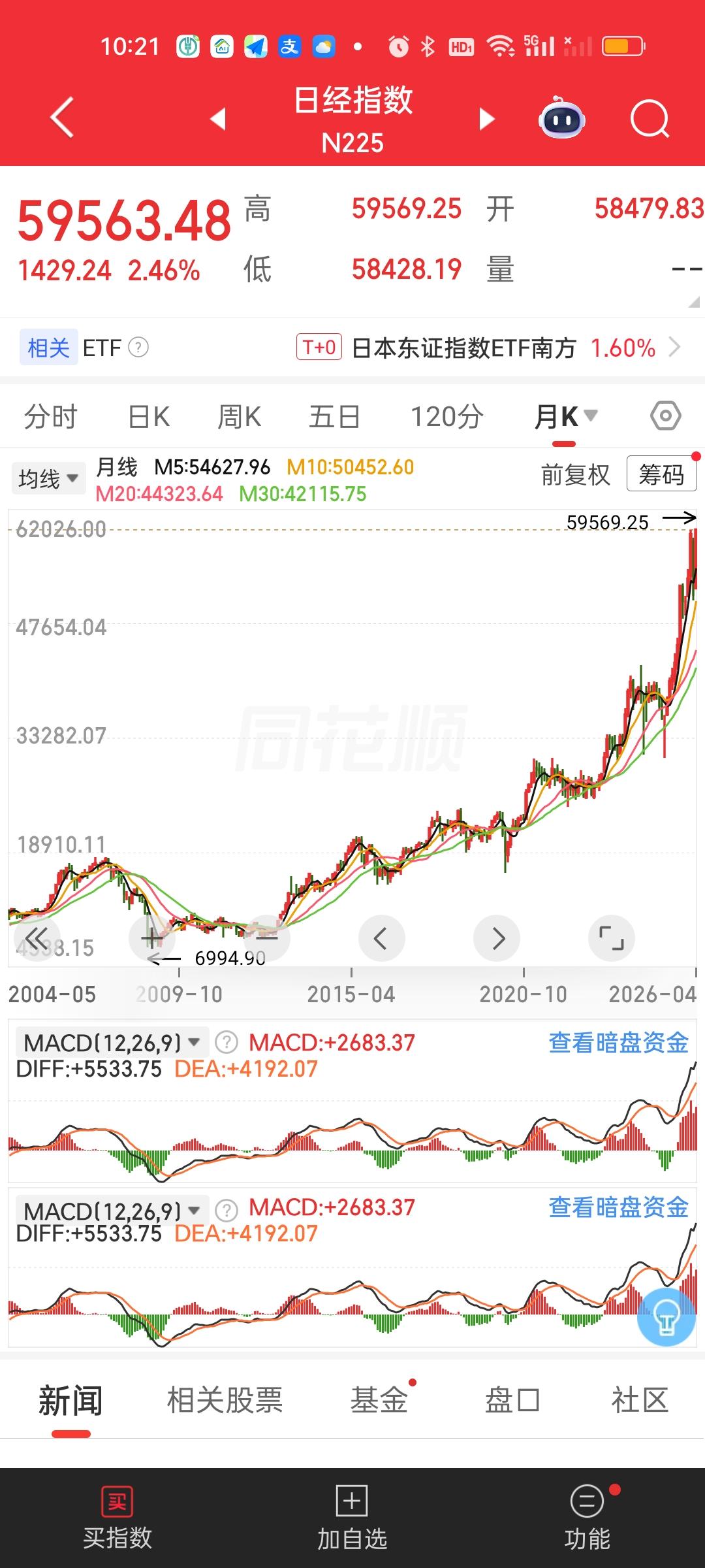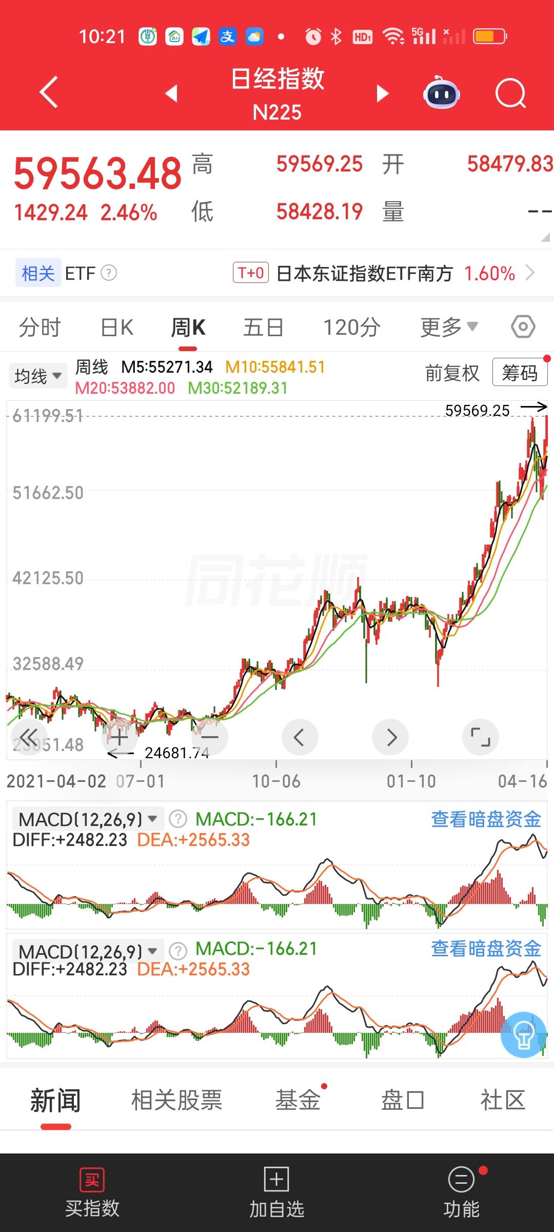搞了半天今天成了全球其它市场集体破新高的日子!历史会铭记这一天吗?这不话音未落,日本股市已经创出历史新高了,也就是75年来的新高。早上还差七八百点的,瞬间爆拉破历史新高,不得不服。 连带着韩国股市也开启了反攻的号角,距离新高就差110多点。晚上美股纳指和标普500指数刚破新高。紧接着今天其它市场破新高是此起彼伏,一个接着一个。为何我们的市场就是没有动静啊?