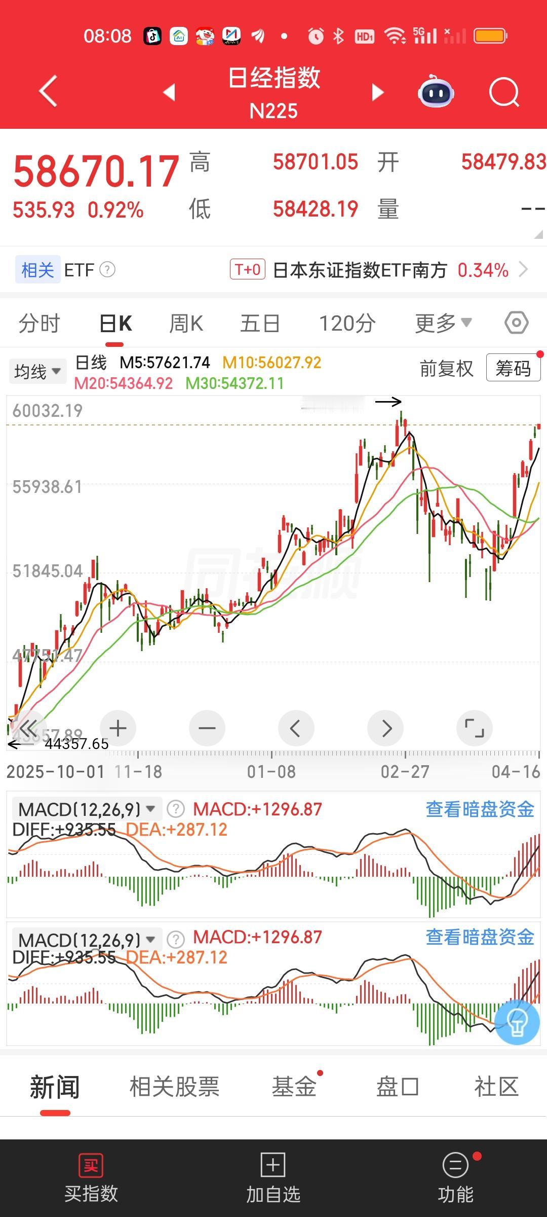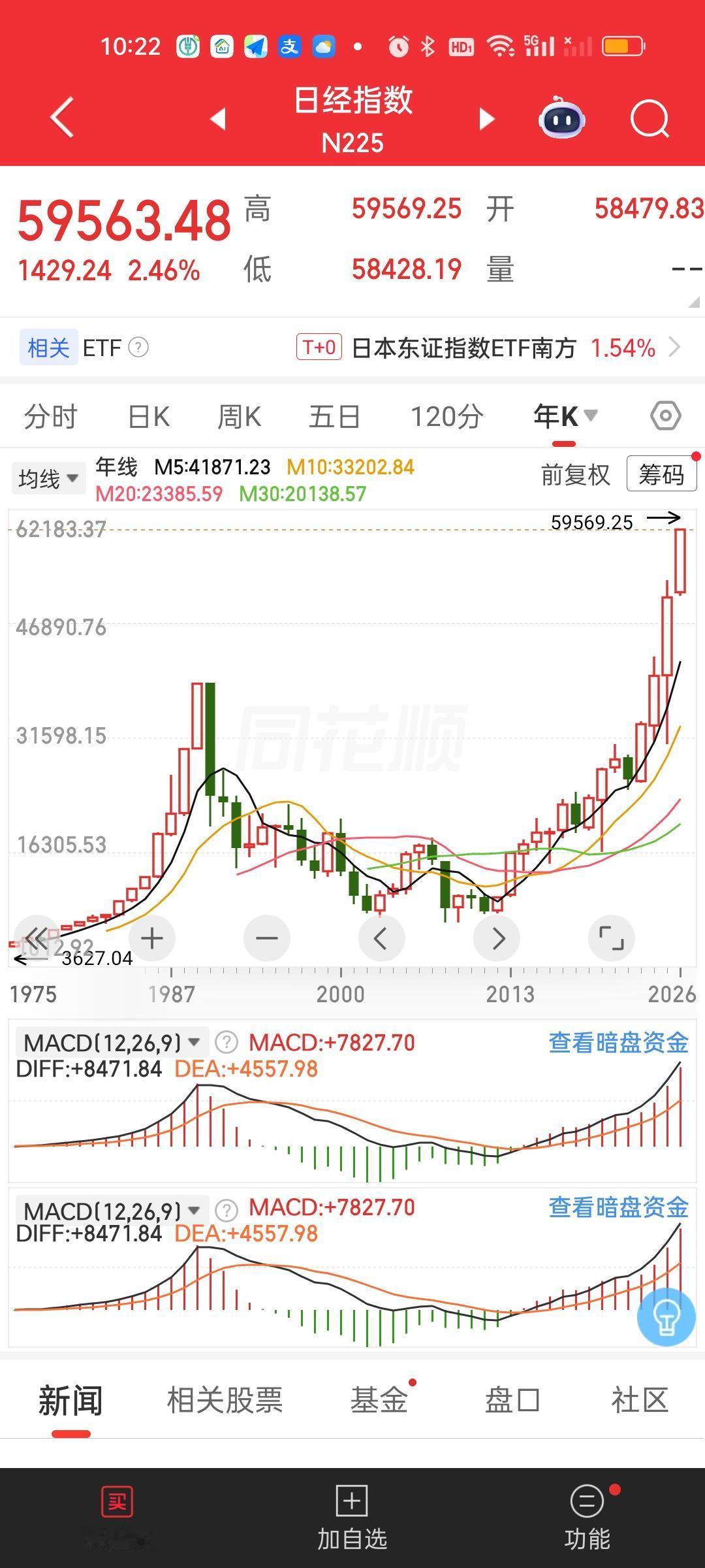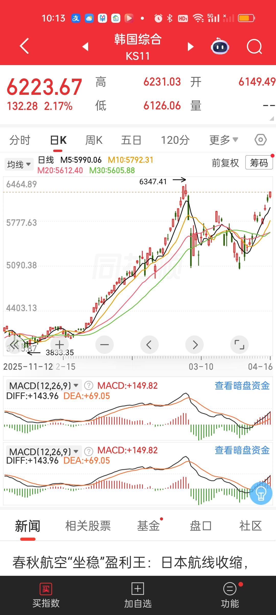 搞了半天今天成了全球其它市场集体破新高的日子!历史会铭记这一天吗?这不话音未落,日本股市已经创出历史新高了,也就是75年来的新高。早上还差七八百点的,瞬间爆拉破历史新高,不得不服。 连带着韩国股市也开启了反攻的号角,距离新高就差110多点。晚上美股纳指和标普500指数刚破新高。紧接着今天其它市场破新高是此起彼伏,一个接着一个。为何我们的市场就是没有动静啊?