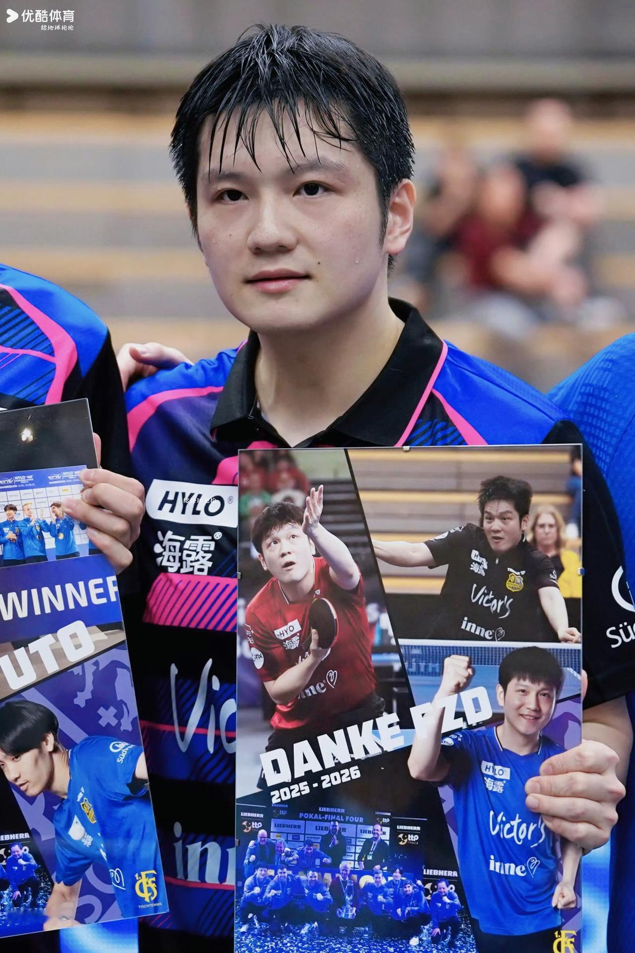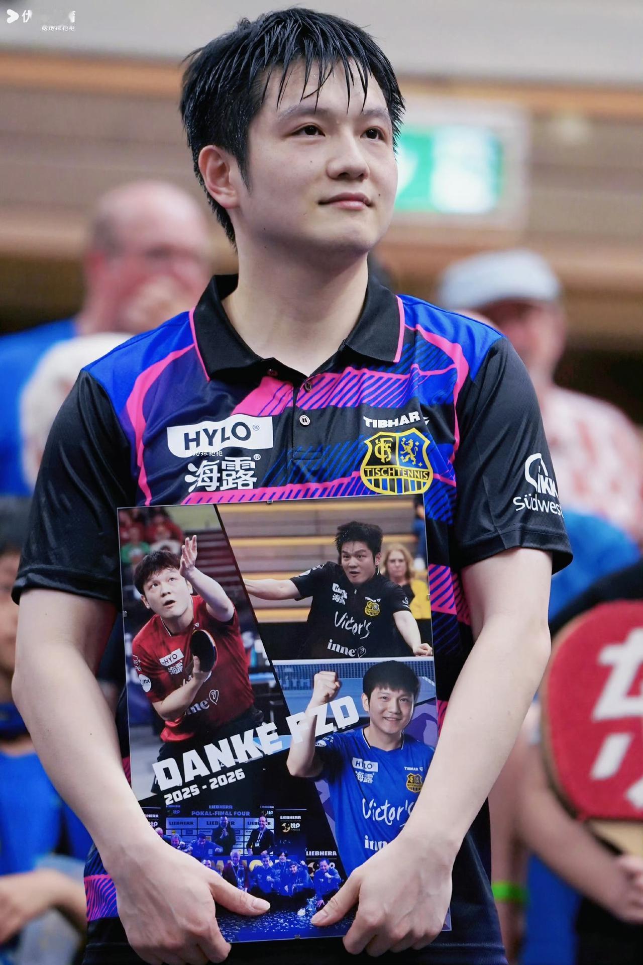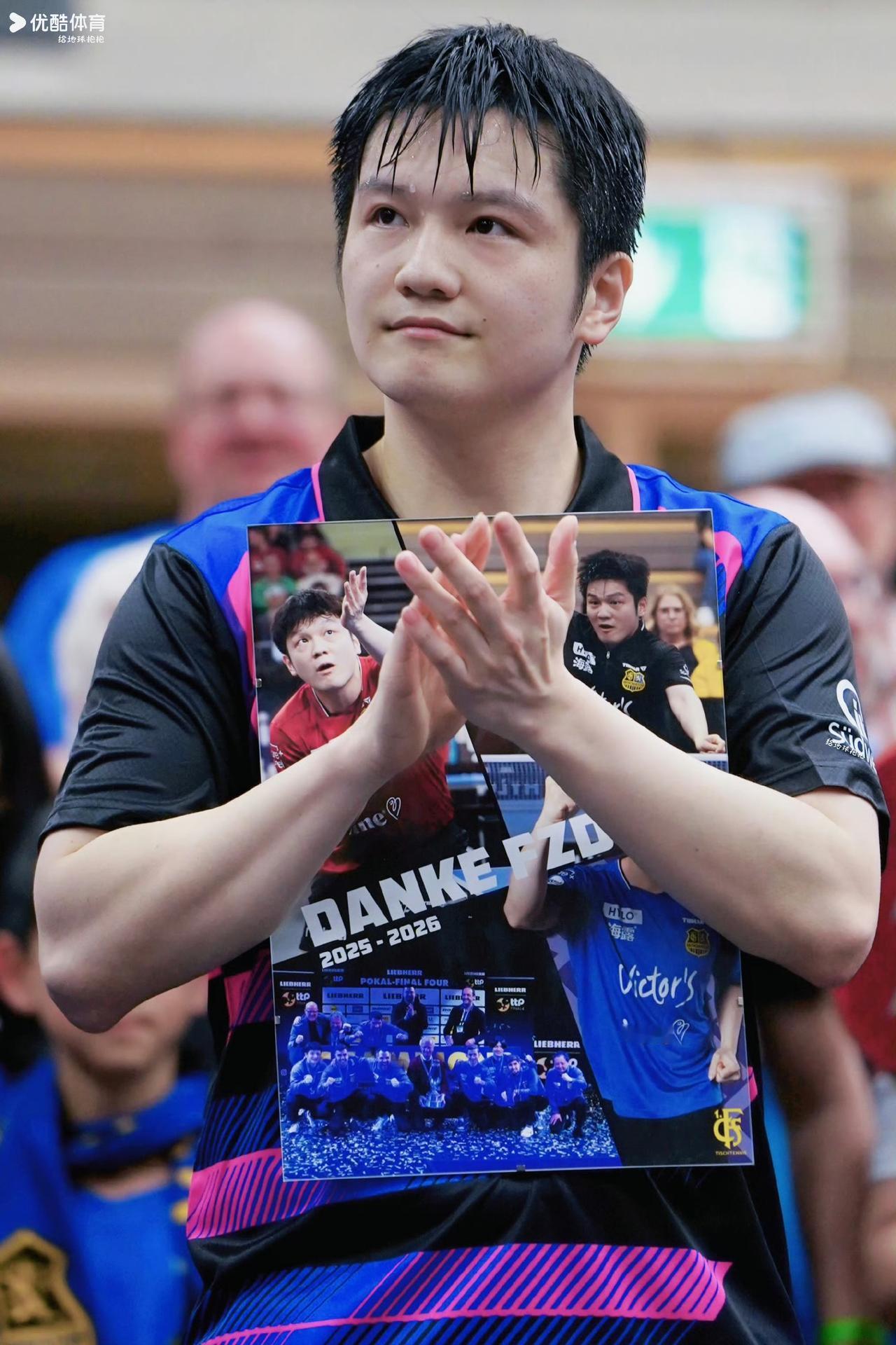 樊振东完成了在萨尔布吕肯的最后一战, 俱乐部老板亲自送上神秘礼物, 一份承载着所有人的祝福与关怀, 短短一年时光, 樊振东给欧冠,给德甲,给萨尔布吕肯, 留下了太多的美好, 老爷爷将最具代表意义的四张照片, 送给了这位传奇英雄, 感谢他为俱乐部所做的一切, 三张个人照, 分别是东哥在主场时所穿的三套队服, 每一个瞬间, 都凝聚着力量与希望, 最后一张, 是球员的大合影, 是这个大集体对东哥的满满情谊, 送君千里终有一别, 东哥即将开始新的征战, 当下一次来到萨尔布吕肯时, 将会以竞争对手现身, 估计到时候东哥依旧可以享受到主场版的待遇