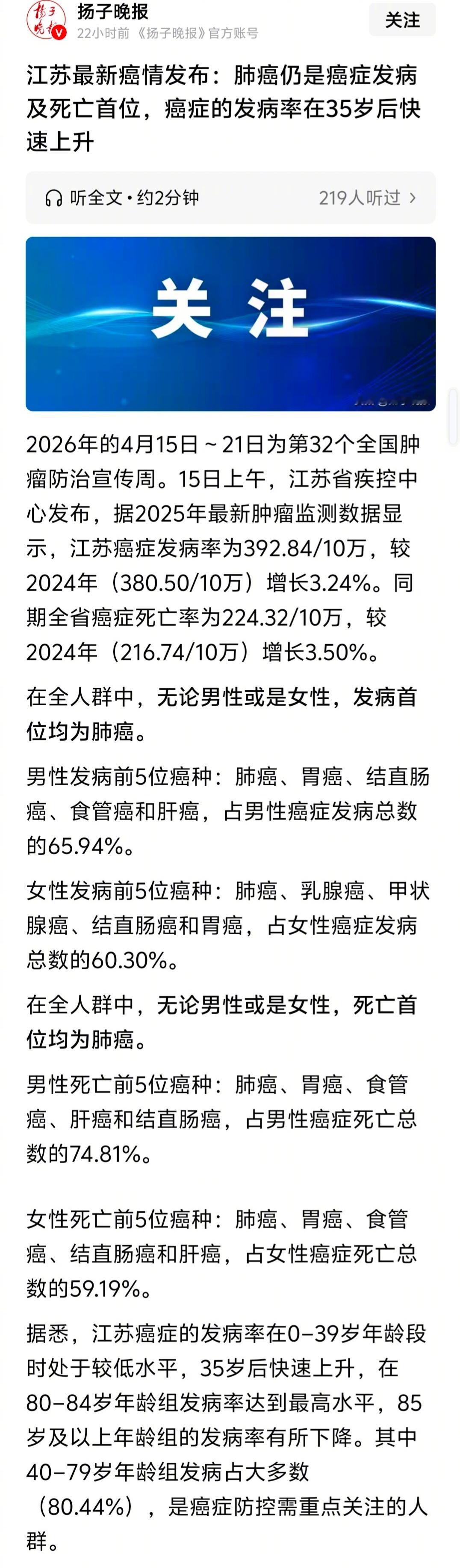 浙江癌症发病率死亡率首位均为肺癌 不仅浙江是这样,江苏也是这样。不仅江浙这样,全国也是这样,肺癌的发病率与死亡率居首位。