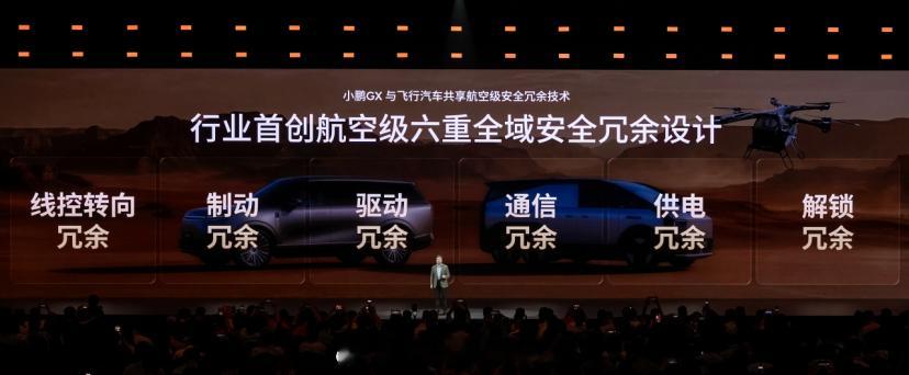 安全方面的冗余,就算再多也不过分。小鹏在飞行汽车领域,更要做到极致的冗余,毕竟在空中承受不起任何一点失控的后果。小鹏GX就是与飞行汽车共享航空级安全冗余技术。其中,线控转向系统实现四重安全备份,任意三个系统失效仍能安全靠边停车;制动系统拥有四重制动冗余,制动管路故障、制动踏板失效仍可稳定刹停;驱动系统也能做到双重冗余,高速行驶1个电驱故障,另1个电驱1毫秒接管,稳稳开回安全区域;同时小鹏GX还配备了通信传输系统双重冗余、线控底盘低压供电双重冗余、车门解锁四重冗余。整车关键研发体系面向ASIL-D最高功能安全等级设计开发。这是极端的冗余了。