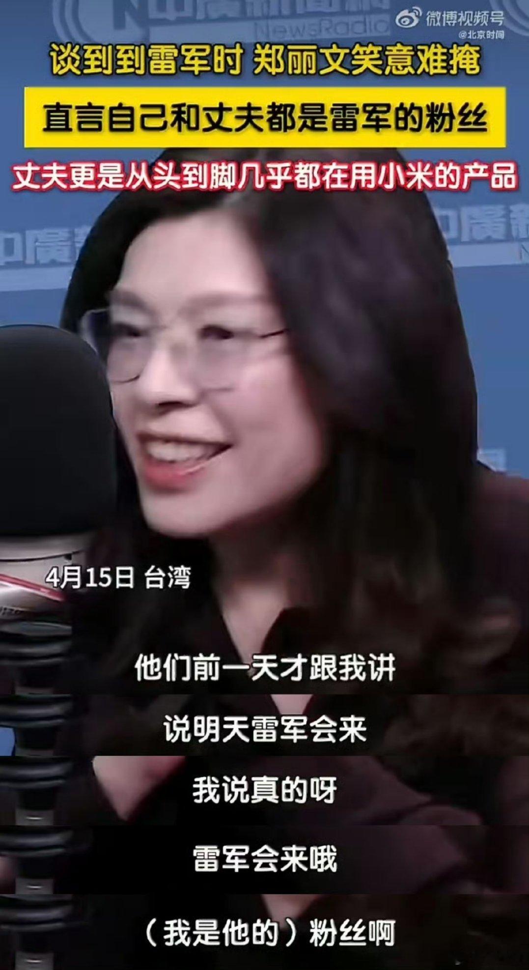 郑丽文直言是雷军粉丝纯靠产品产生链接的郑秀文和雷总,又多了一位粉丝,而且提到雷总,突然有种追星成功的兴奋感!