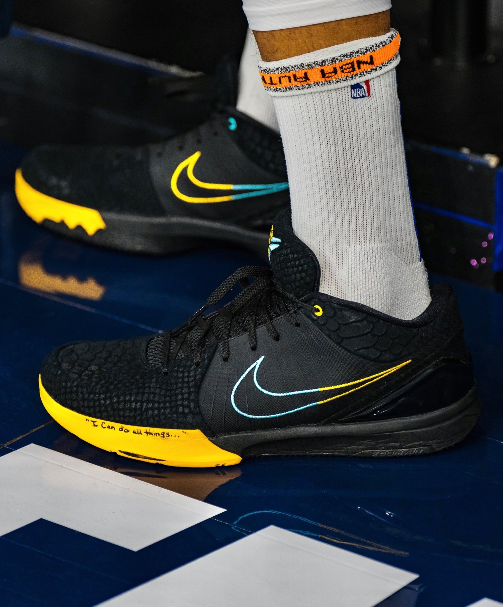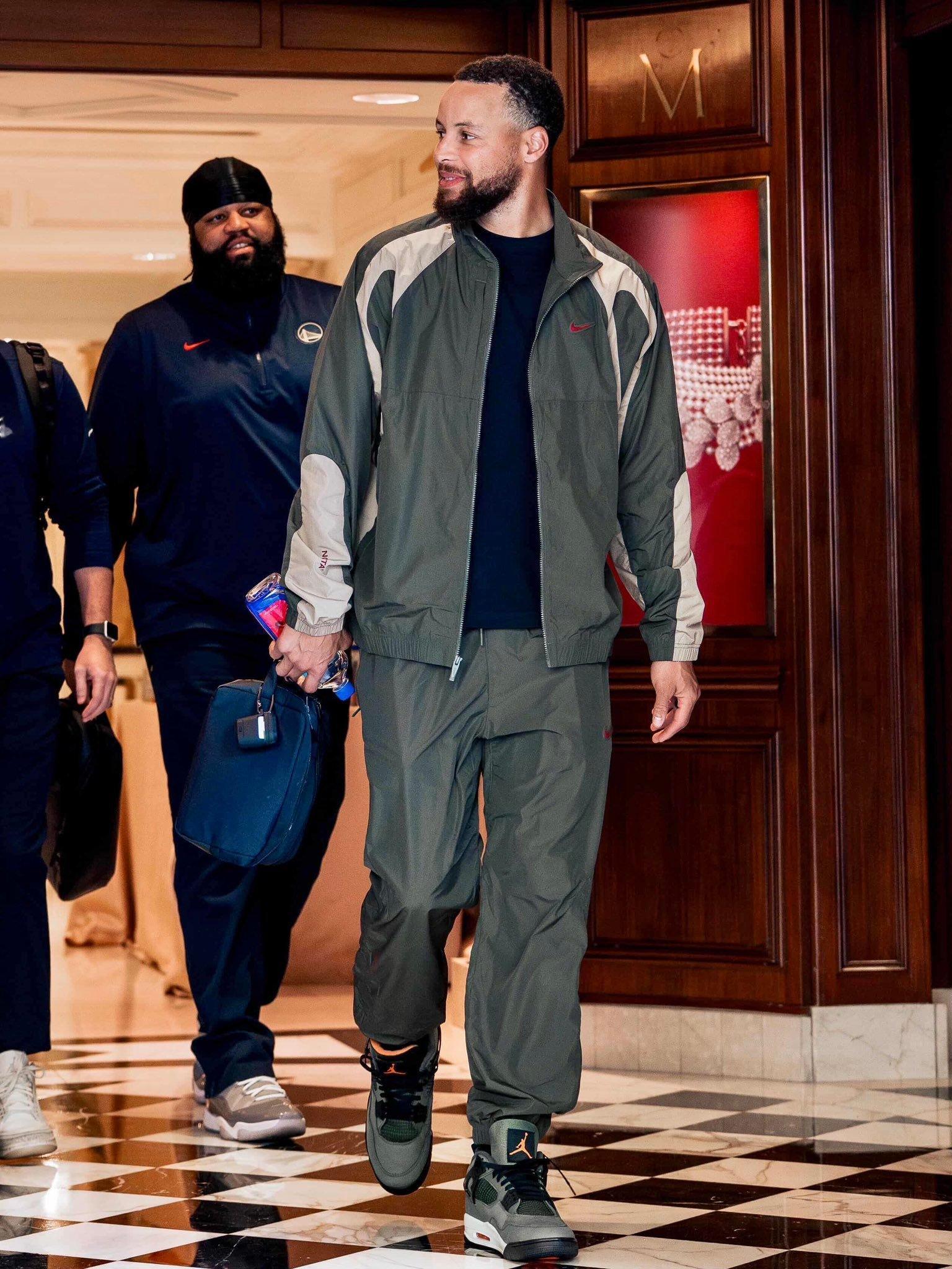库里赛前穿搭上脚的AJ4 undefeated联名,比赛训练穿的Kobe 4
