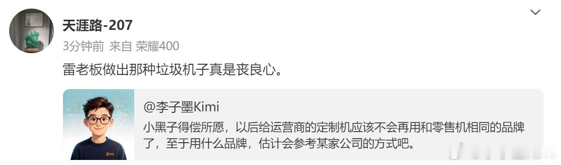 小黑子得偿所愿,以后给运营商的定制机应该不会再用和零售机相同的品牌了,至于用什么