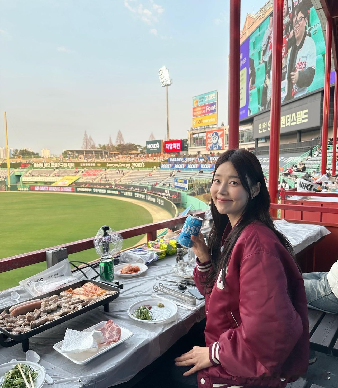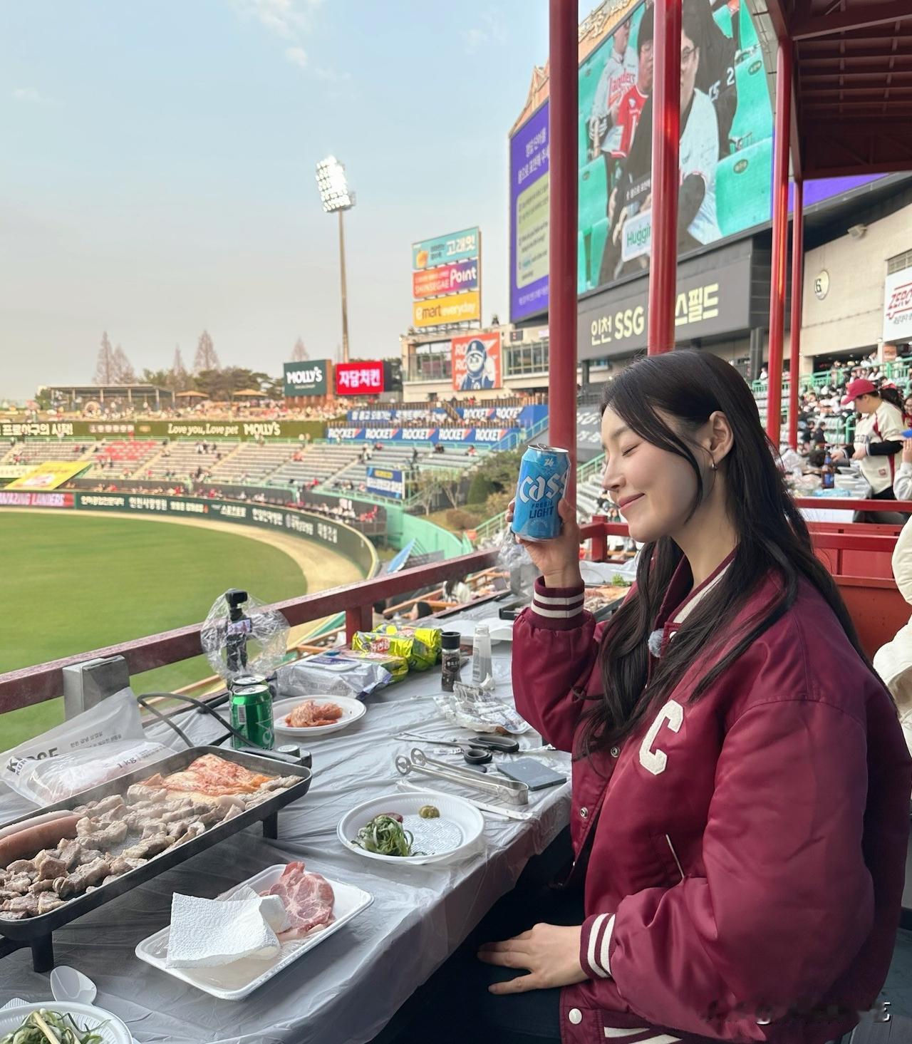近日,演员韩智慧在Instagram上传了多张照片,并配文“我被棒球场的魅力迷住了!” 照片中,韩智慧一身黑色内搭叠穿棒球外套,造型休闲又不失格调。简约舒适的穿搭之下,依旧难掩清逸温婉的气质,她对着镜头笑容明媚,手持啤酒随性摆拍,尽显松弛自在的日常氛围感。五官精致立体,颜值状态依旧能打,优雅气场浑然天成,女神范儿十足。