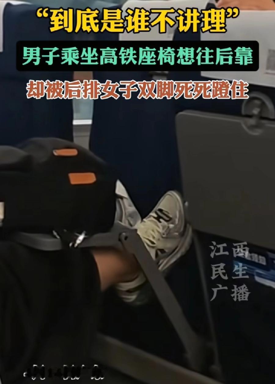 男子座椅后靠后排女子蹬住,12306设计有问题!前排能后倾,后排有小桌板,必须要兼顾前后排,限制前排后倾度数!比如在标准坐姿倾斜度基础上,向后倾斜度控制在增加5%范围内!不影响后排使用小桌板,否则乘客啥人都有,碰到这种情况,前排男子要后倾躺着舒服,后排女子要使用小桌板!谁有理?服务重在细节,希望120306改进!