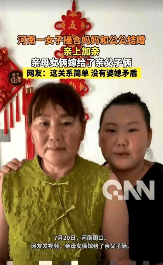 “彻底乱套了!”河南周口一女子结婚后,看公公天天闷在家里孤单寂寞,一咬牙,竟然将自己的亲妈许配给了公公。亲母女俩,直接嫁给了亲父子俩,四个人硬是拼成了一个新家庭! “我觉得俺妈跟俺公公合适!亲上加亲嘛!”90后女孩莎莎说出这话时,谁也没想到这事后来真能成:把离异多年的亲妈和丧偶多年的公公撮合成了一对。 事情起因其实特别简单。莎莎的公公马先生是个苦命人,老婆在儿子刚出生几个月时就走了,他既当爹又当妈,硬是把儿子拉扯大,三十多年没再娶。 莎莎嫁进马家后,发现公公的日子实在过的太苦闷了。而莎莎的亲妈智女士,离婚十几年,一个人过得也挺冷清。 莎莎看在眼里,急在心里,心想与其让两个知根知底的老人在各自家里叹气,不如凑一块儿搭个伴。 起初这想法一提出来,两位老人都觉得尴尬,脸红脖子粗地直摆手,觉得“亲家变夫妻”这传出去太丢人。 但在莎莎和丈夫的软磨硬泡下,两位老人试着接触了一下。这一接触不要紧,发现彼此竟然意外地合拍。 马先生勤快实在,会修修补补;智女士温柔贤惠,做饭好吃。两人一个爱听戏,一个爱唱曲,没几天就聊到一块儿去了。 2025年7月,两位老人终于领了证,智女士成了莎莎的“婆婆”,马先生成了莎莎亲妈的“老伴”。 这下可好,网友们戏称这是“婆媳矛盾的终结者”。你想啊,婆婆变成了亲妈,哪还有什么隔夜仇?智女士操持家务,对女儿女婿那是掏心掏肺;马先生更是乐得合不拢嘴,工资上交,带娃做饭样样行。 两个苦了大半辈子的人,总算是在晚年苦尽甘来了。 当然,这事儿引发的争议也不少。有人担心这种关系太乱,不符合传统伦理,也有人担心财产继承会有纠纷。但从法律上讲,只要没有血缘关系,这种婚姻完全合法 更重要的是,它解决了一个非常现实的社会问题:老年人的情感寄托。对于这两位老人来说,与其在漫长的余生里独自面对孤独,不如找个知冷知热的伴。 还有网友好奇称呼的问题:孩子以后管智女士叫啥?管马先生又叫啥?是叫爷爷奶奶,还是姥姥姥爷?其实,这家人早就想好了,怎么顺口怎么叫。 毕竟称呼只是个代号,一家人整整齐齐、热热乎乎地过日子。才最重要。 对此你有什么看法?欢迎在评论区留言讨论。领航新锐收益节节高 信息来源: 民生频道|大参考|女子把亲妈介绍给公公亲上加亲 文|战战 编辑|史叔